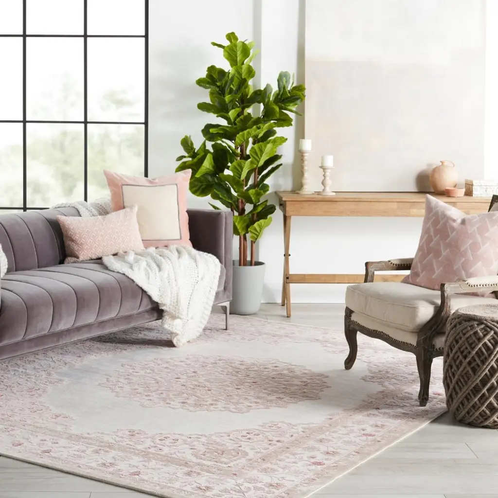 Jemma Modern Pink Floral Patterned Rug - 2'6"x8'