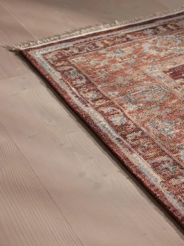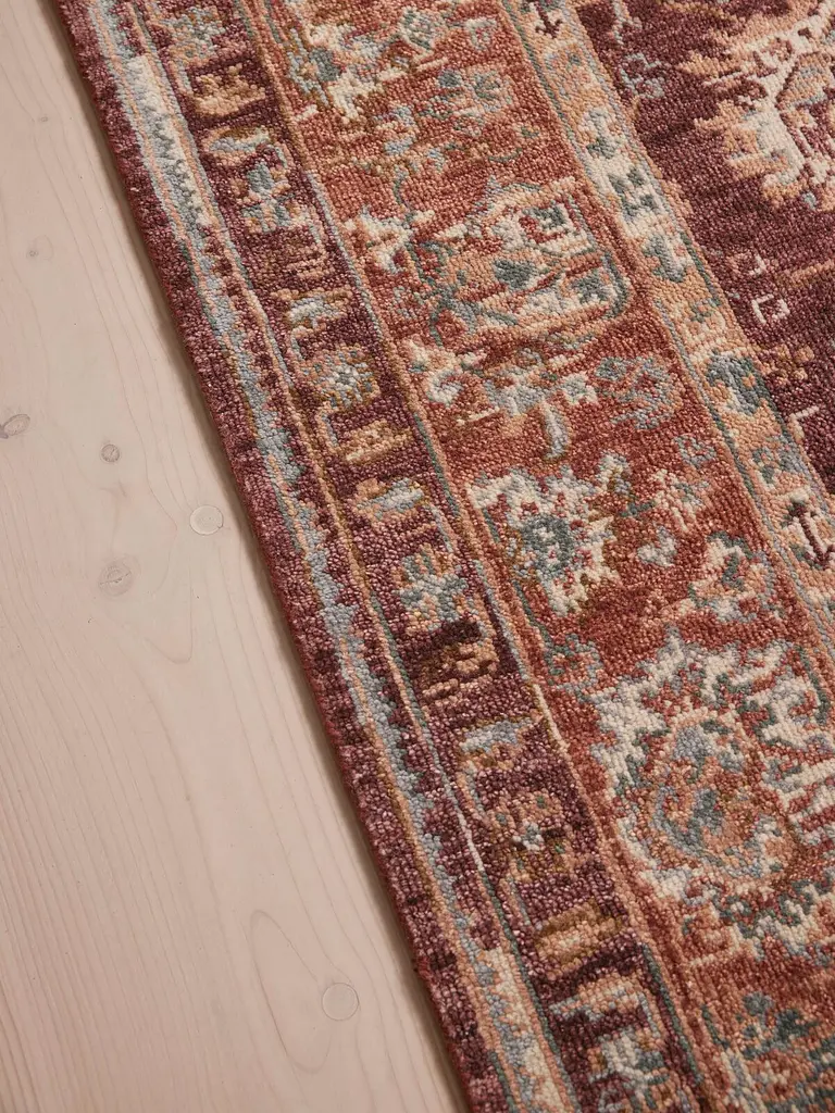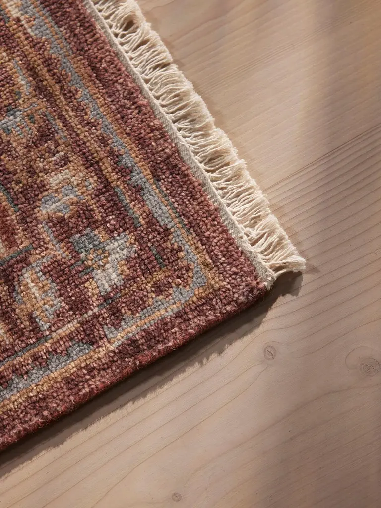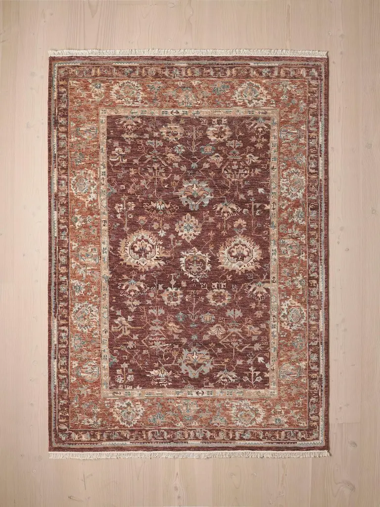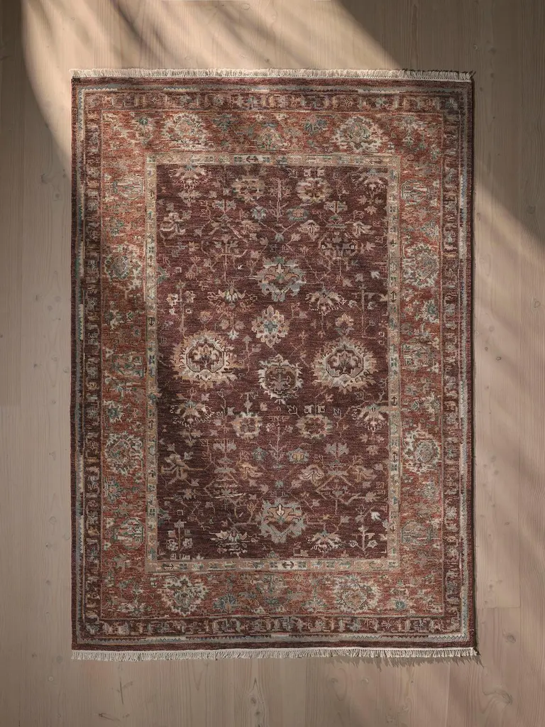 The Jensen rug is inspired by traditional 19th-century Persian rug designs found in Soho Farmhouse. An intricate all-over pattern and decorative border is met with rich and deep warm tones as the perfect grounding layer in any room. Hand-knotted in India from a combination of Afghan and New Zealand wool, each one takes up to six months to craft with 41 knots per square inch. Traditionally, hand-knotted rugs still form the highest quality standard among all types of rugs and, depending on the type of knot, can last for generations in the home. Persian-style rug Hand-knotted in India 41 knots per square inch Each rug takes up to six months to craft 100% Afghan lustre wool and New Zealand wool Short pile Inspired by 19th-century Persian rug designs seen at Soho Farmhouse