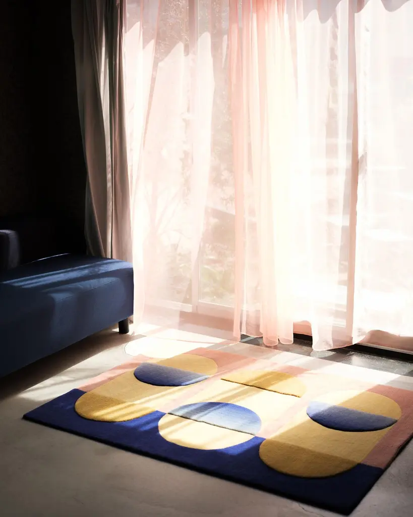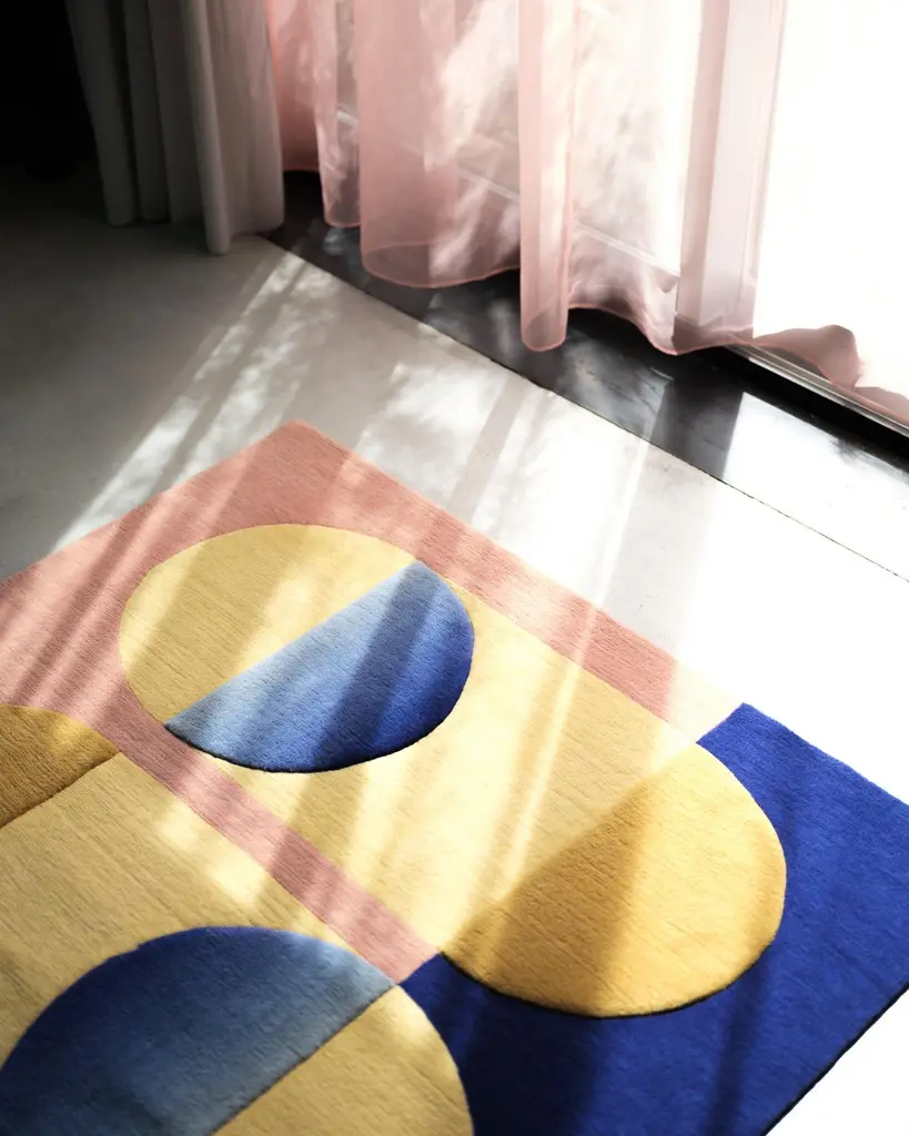 Jensin Okunishi Studio Moon Pools Pink And Blue Hand-Knotted Wool Rug