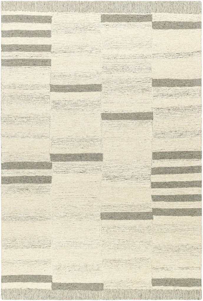 Collection: Jeri Colors: Beige, Dark Brown, Medium Gray, Medium Brown Construction: Hand Tufted Material: 100% Wool Pile: Medium Pile Pile Height: 0.24" Styles: Transitional,Bohemian Backing: Canvas Made In: India Thickness: 0.39" Price Range: $$$$$ (Affordable)