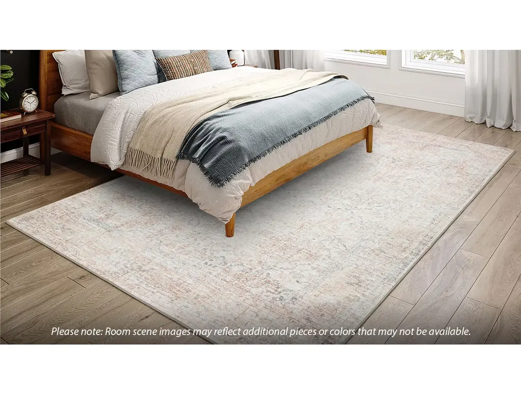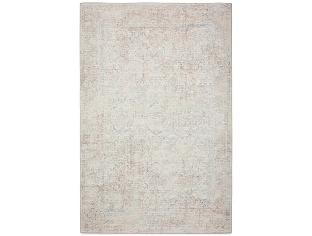 An intentionally distressed pattern in neutral hues covers the Dalyn Jericho Pearl Area Rug. This traditional-style rug is machine woven in USA of synthetic fibers with non-skid backing for long-lasting beauty. Available in other colors.