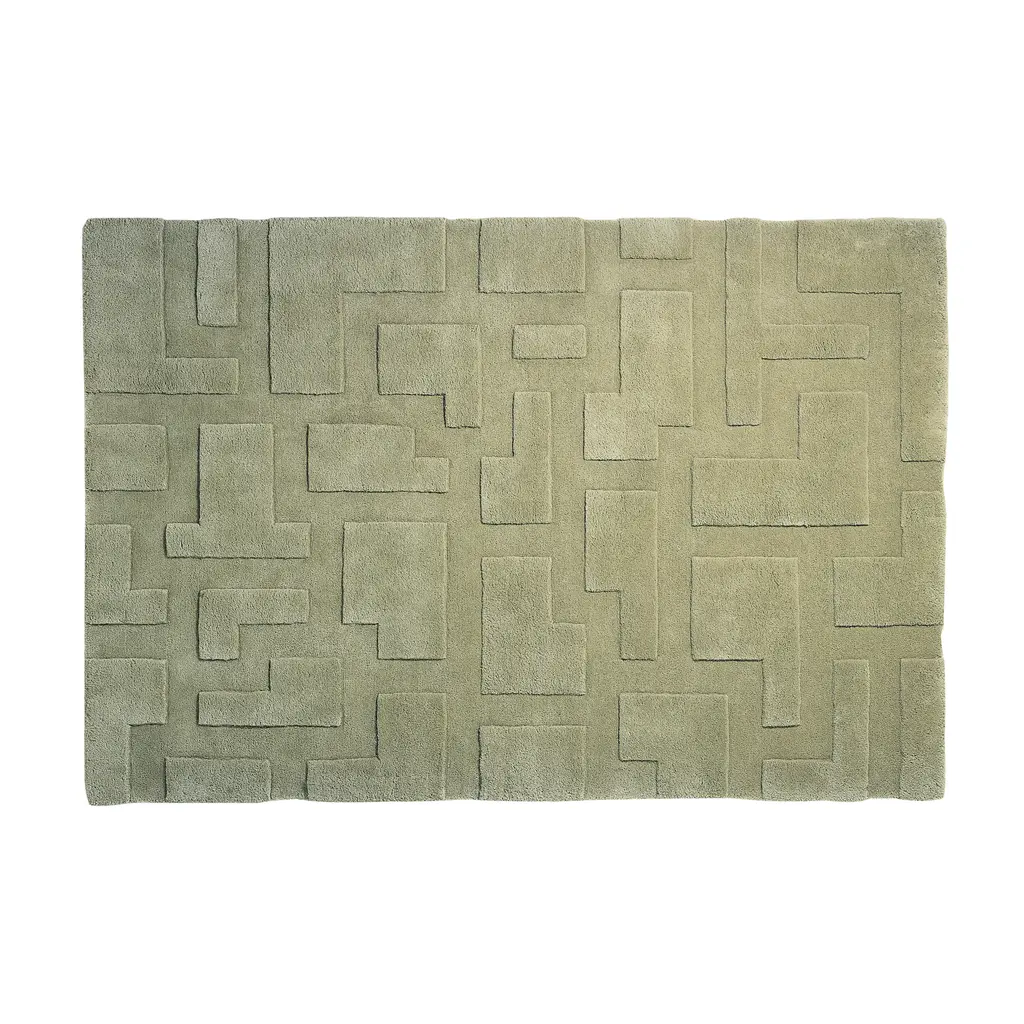 In the small JL version, like its siblings in the series, boldly interlocking geometrics signify designer Jonas Lindwall hand-tufted rug with a raised pattern. With the motif scaled to fit each overall size, Asplund’s carpet is entirely artisan-made: the yarn is hand dyed, tufted with a small mechanical tool and finally sheared, using manually held scissors.