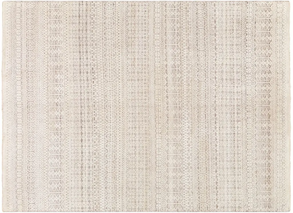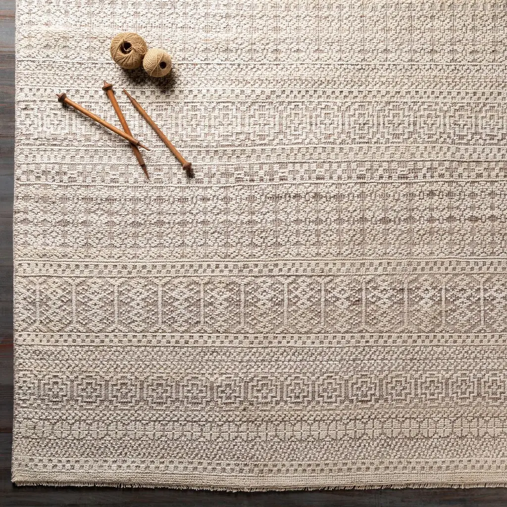 The high-low texture of the geometric motifs and the tonal variations of the palette give this rug its quiet allure. A rug pad is recommended to prevent slipping and extend the life of the rug.