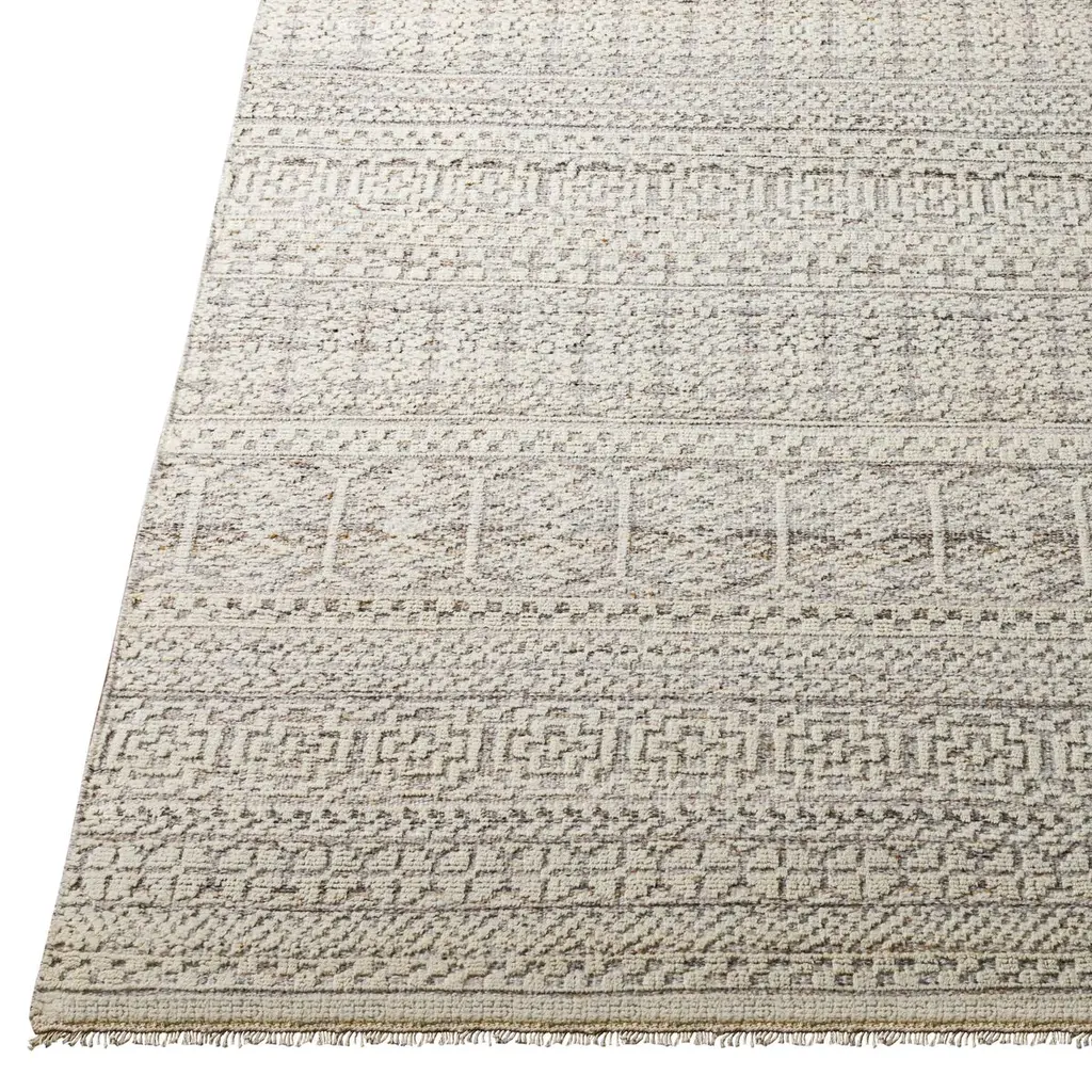 The high-low texture of the geometric motifs and the tonal variations of the palette give this rug its quiet allure. A rug pad is recommended to prevent slipping and extend the life of the rug.
