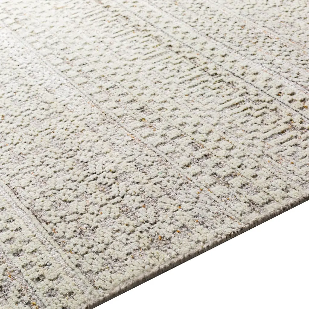 The high-low texture of the geometric motifs and the tonal variations of the palette give this rug its quiet allure. A rug pad is recommended to prevent slipping and extend the life of the rug.