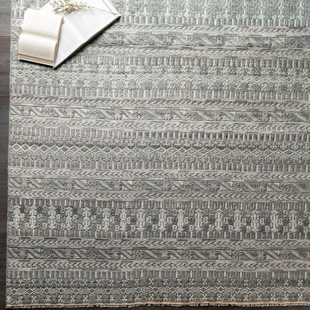 The high-low texture of the geometric motifs and the tonal variations of the palette give this rug its quiet allure. Hand-knotted of plush wool and silky viscose, it feels as sumptuous as it looks. A rug pad is recommended to prevent slipping and extend the life of the rug.