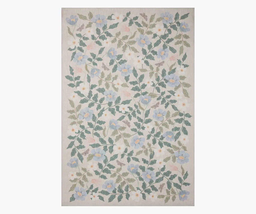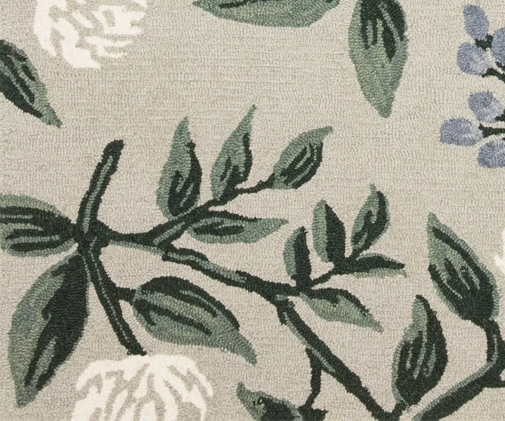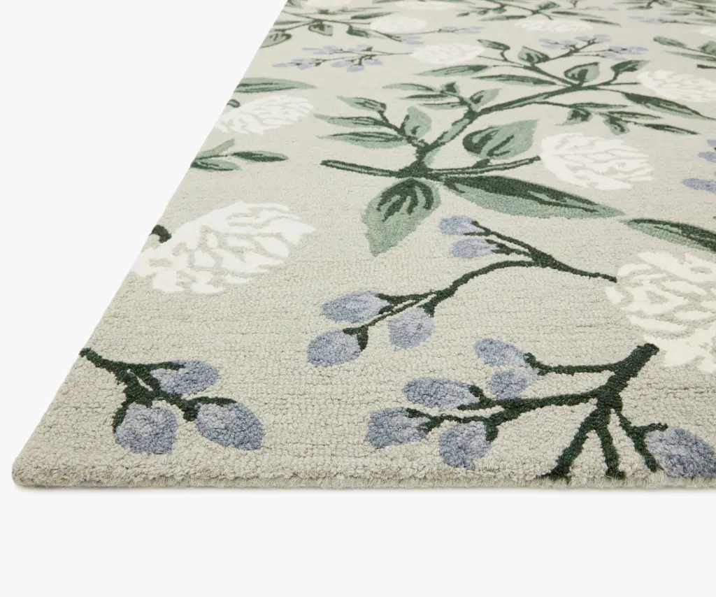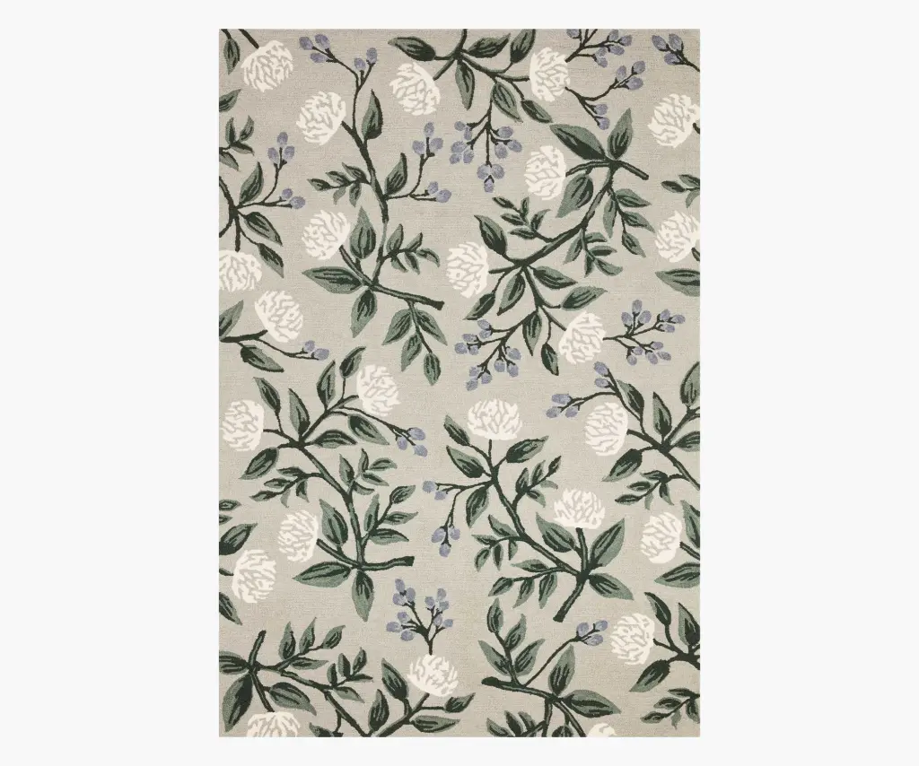 Hooked by artisans in India from 100% wool yarn, our Peonies rug features large-scale blooms and budding branches for a graphic yet feminine feel. Part of our Rifle Paper Co. × Loloi collaboration. The layout and scale of our rugs is adjusted to accommodate each available size, and may be different than what is pictured here. Images of each size are available by hovering over the desired size on our desktop site.