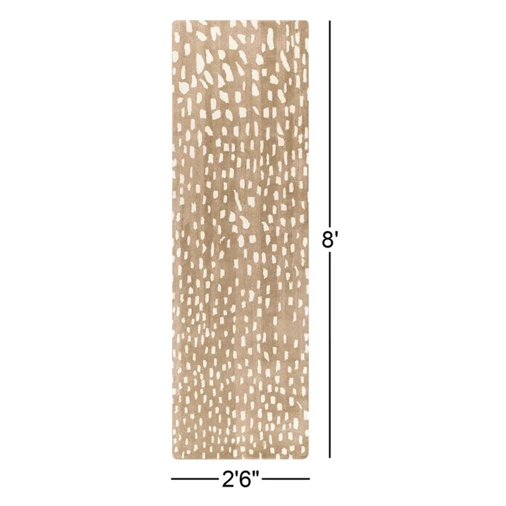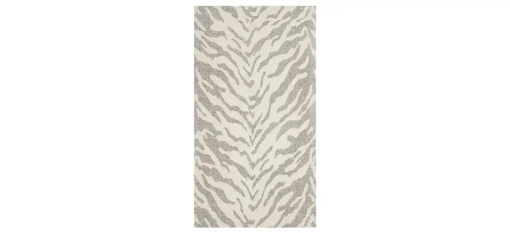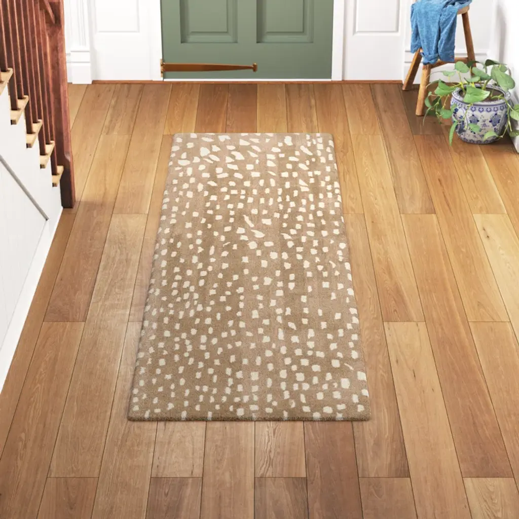 This hand-tufted area rug will bring a focal point to any living room or bedroom with its eye-catching animal print. It's handmade in India from wool that'll stand up to any splash or spill. The natural material holds up well to regular use, so it's great for homes with kids or pets. The thick 0.63" pile height adds a cushioning effect to floors in your low-traffic rooms. To care for it, spot clean only with mild detergent. Just don't forget to add a rug pad underneath.