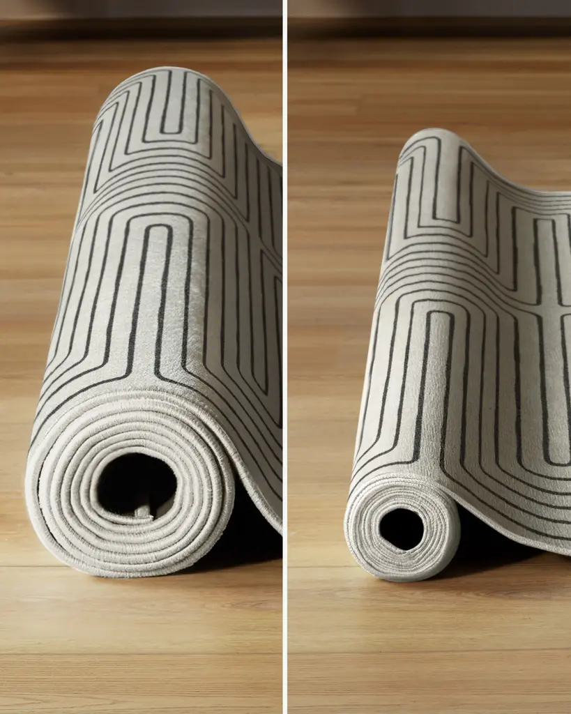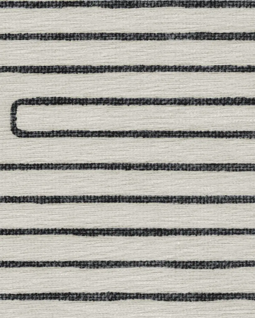 Irregular linework inspired by hand-cut paper softens a large scale maze pattern. Our Jonathan Adler Labyrinth Black and Ivory Rug features a continuous line with a hand-drawn feel in black on an ivory background. Water-resistant, stain-resistant, and machine-washable.