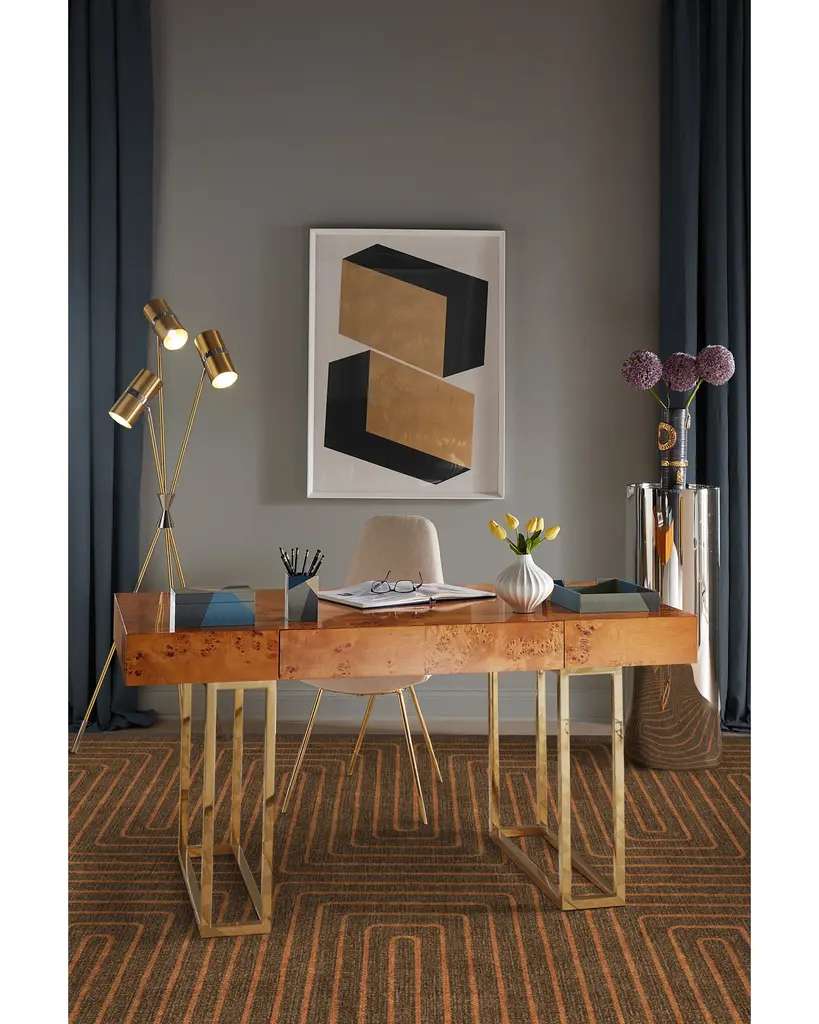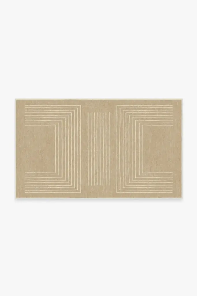 Irregular linework inspired by hand-cut paper softens a large scale maze pattern. Our Jonathan Adler Labyrinth Brown and Orange Rug features a continuous line with a hand-drawn feel in bright orange on a warm cognac brown background. Water-resistant, stain-resistant, and machine-washable.