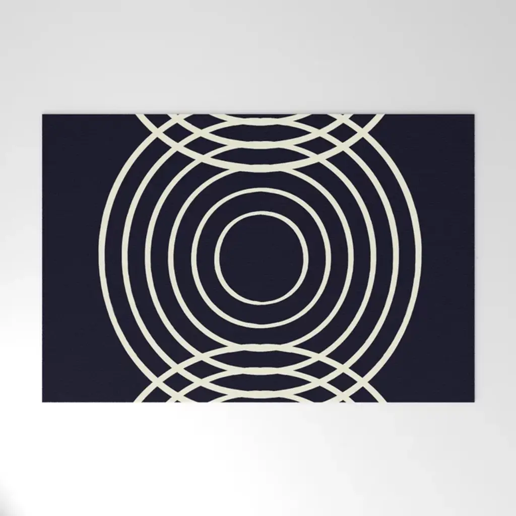 Graphic go-anywhere funster. This charcoal and off-white geometric rug mesmerizes with its dynamic, op art-inspired pattern. Water-resistant, stain-resistant, and machine-washable.