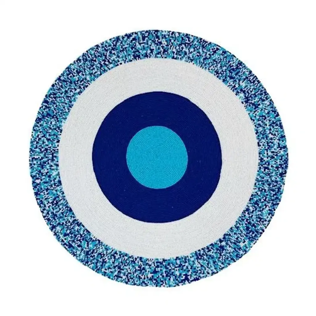 A stunning piece that commands attention. This graphic rug features a mid-century modern-inspired linear pattern in eye-catching shades of teal, mauve, coral, and terracotta. Water-resistant, stain-resistant, and machine-washable.