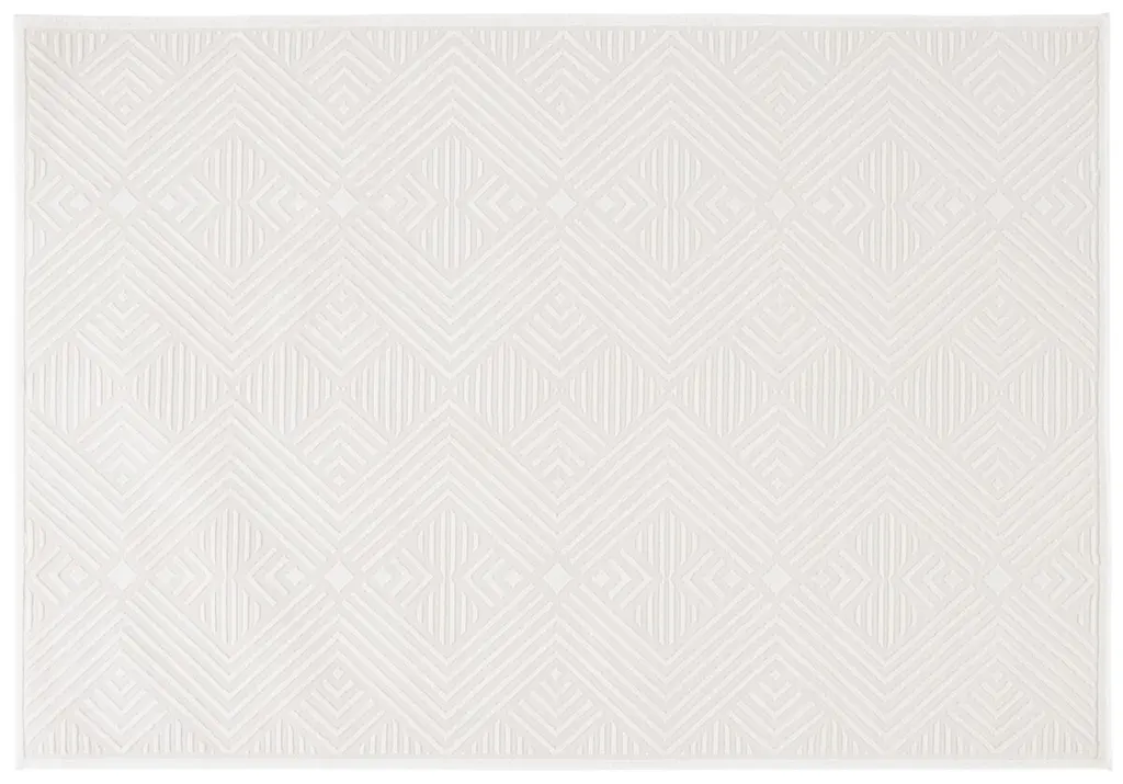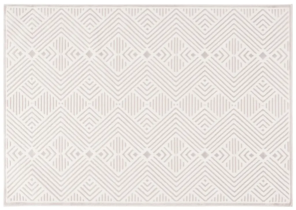 Inspired by Art Deco design, our jazzy geometric rug is power-loomed with a short pile. The all-over pattern is woven on an ivory background. Add some graphic mid-century punch to your living room, dining room, entry, or bedroom with this easy-care rug.