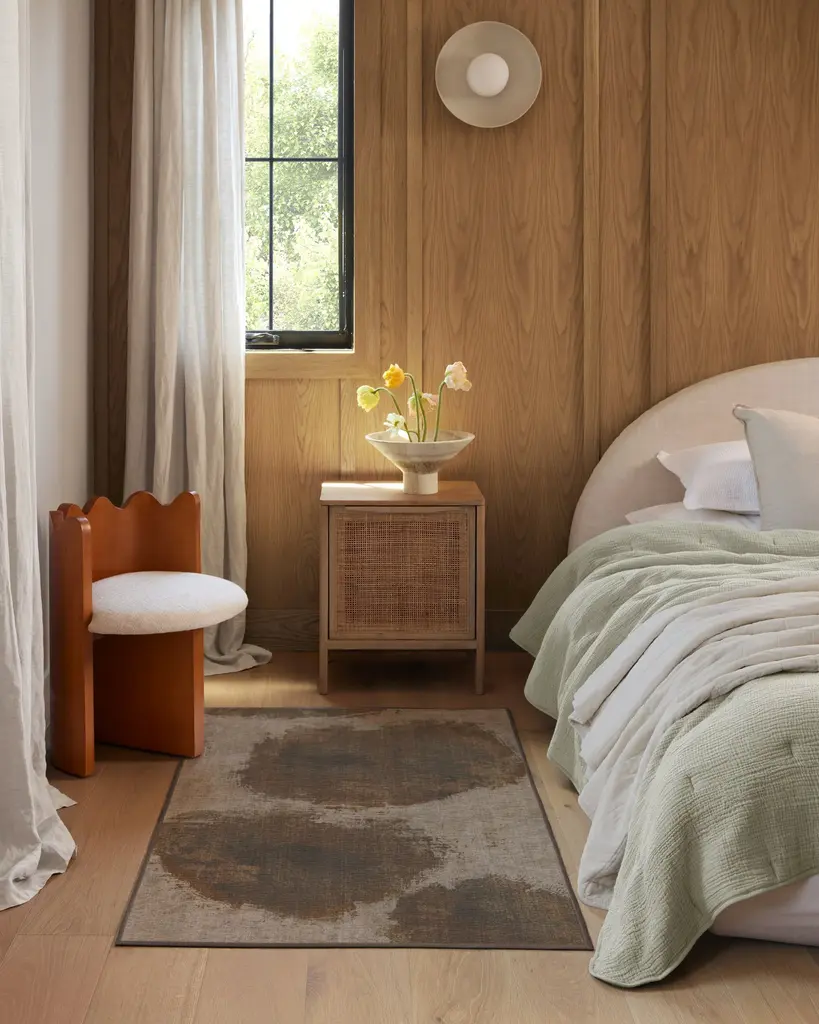 Turn inspiration into reality with our Architectural Digest Jorda Bronze Natural Rug. Inspired by the forms of totemic structures, this archaic-inspired design is an abstract nod to stacked stones. The patina-like raw edges create a feeling of erosion, while the layering of various hues and tones creates an organic interplay of highs and lows. Its neutral palette features light taupes and beiges that complement mid tones of copper, charcoal, and brown. Water-resistant, stain-resistant, and machine-washable. Rug colors may vary slightly according to your device and the lighting in your space.
