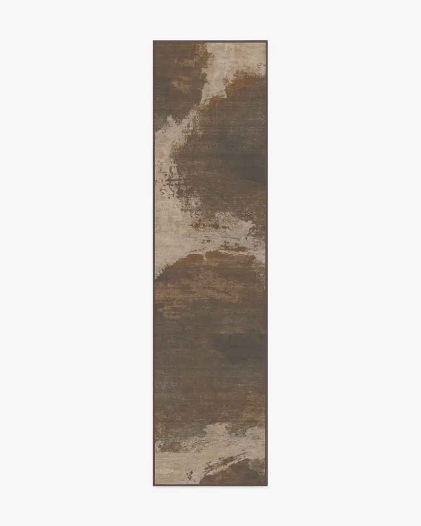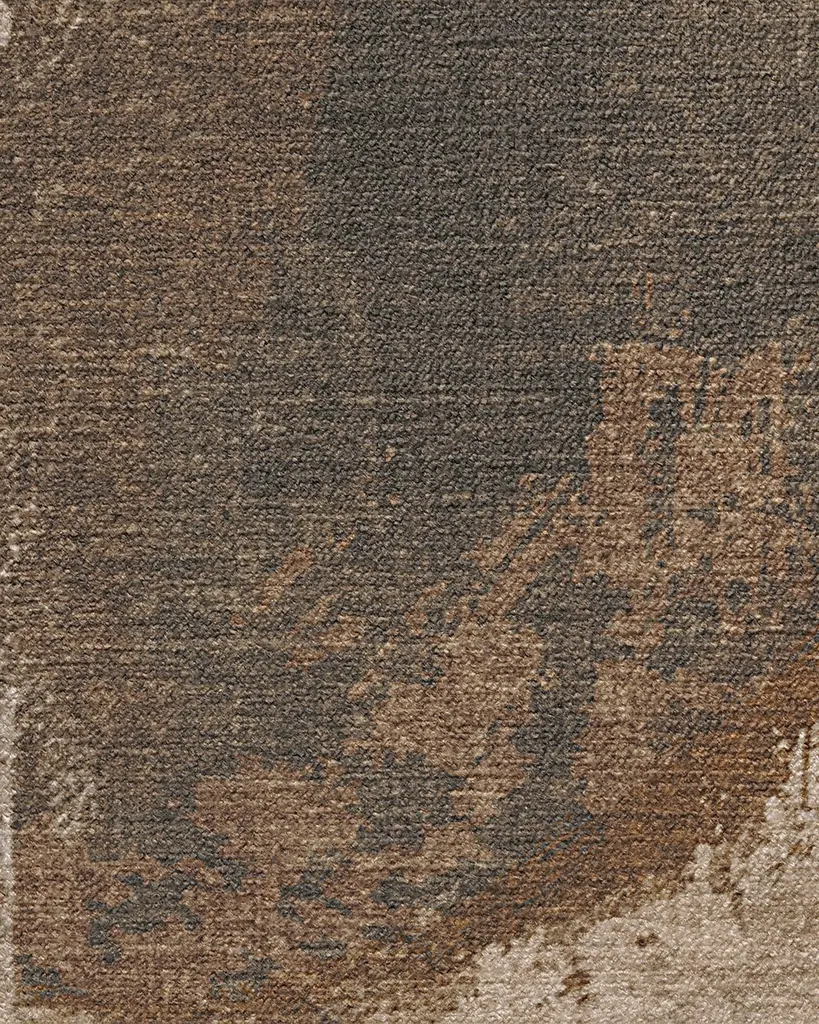 Turn inspiration into reality with our Architectural Digest Jorda Bronze Natural Rug. Inspired by the forms of totemic structures, this archaic-inspired design is an abstract nod to stacked stones. The patina-like raw edges create a feeling of erosion, while the layering of various hues and tones creates an organic interplay of highs and lows. Its neutral palette features light taupes and beiges that complement mid tones of copper, charcoal, and brown. Water-resistant, stain-resistant, and machine-washable. Rug colors may vary slightly according to your device and the lighting in your space.