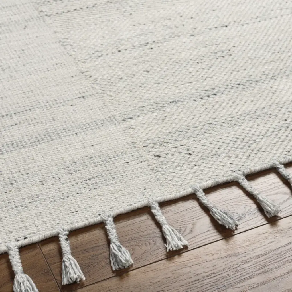 Casual and stylish, this outdoor safe rug will be the perfect centerpiece of any room - inside or out! Featuring fringe tassels, this piece is stunning alone or also makes a great layering piece. Hand woven with recycled pet yarn in India, it's non shedding and easy to clean, making it pet and kid friendly and a durable option for busy spaces.