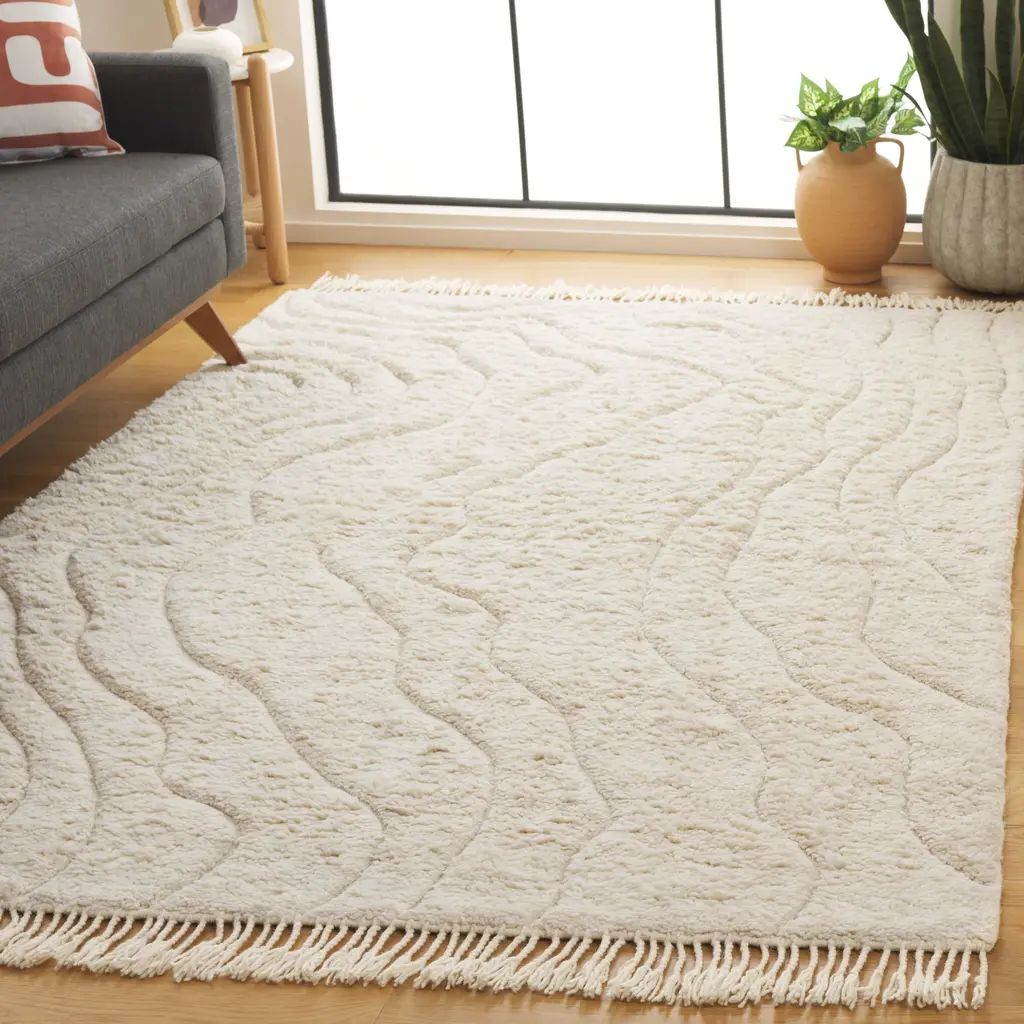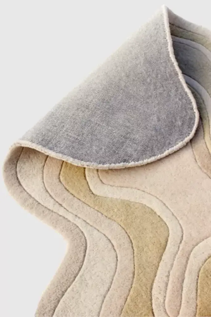 **Made-to-Order. Product will ship within 3 weeks (21–25 business days)** This sculptural rug was designed to bring a sense of calm through shape, texture, and color. Its wavy, irregular silhouette is inspired by the ebb and flow of water, adding soft movement to any room. Hand-tufted from plush New Zealand wool, it feels just as grounding as it looks. Available in a range of earthy and coastal tones—like sage, rust, sky blue, and dusty rose—it’s a standout piece for living rooms, bedrooms, or wherever you want to slow the mood. **Content + Care** \- 100% New Zealand Wool \- Pile Height: 0.75" \- Spot clean only \- Imported **Size + Fit** \- 4': 48"l x 36"w \- 5': 60"l x 48"w \- 6': 72"l x 60"w \- 8': 96"l x 84"w \- 10': 120"l x 108"w