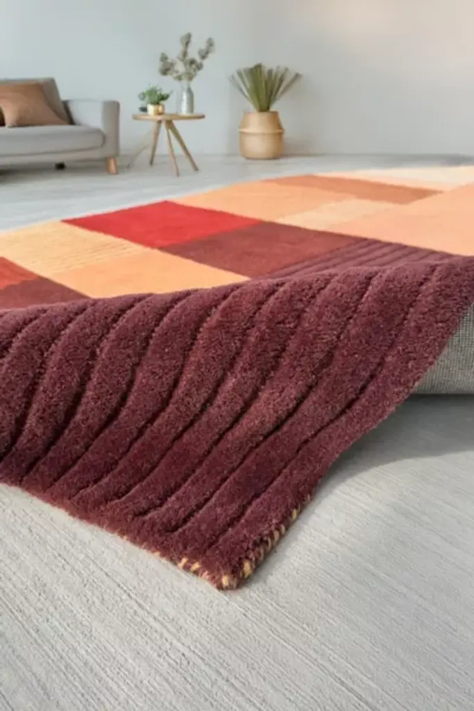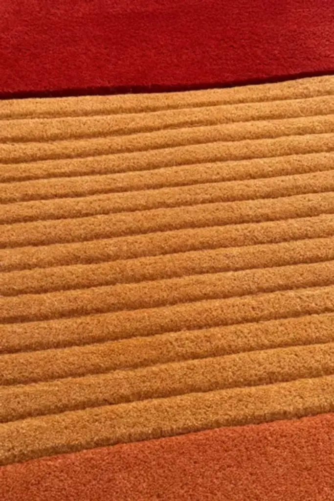 **Made-to-Order. Product will ship within 3 weeks (21–25 business days)** Terracotta, ochre, blush, and plum unfold across a sculptural arch in this hand-tufted wool rug, inspired by the light and warmth of golden hour. The layered composition combines clean lines with rich color and subtle texture, creating a warm, graphic presence. Made from plush New Zealand wool, it’s a grounded focal point for living rooms, bedrooms, or any space that plays with shape and color. **Content + Care** \- 100% New Zealand Wool \- Pile Height: 0.75" \- Spot clean only \- Imported **Size + Fit** \- 2' x 3': 24"l x 36"w \- 3' x 5': 36"l x 60"w \- 4' x 6': 48"l x 72"w \- 5' x 7': 60"l x 84"w \- 6' x 9': 72"l x 108"w \- 8' x 10': 96"l x 120"w \- 9' x 12': 108"l x 144"w