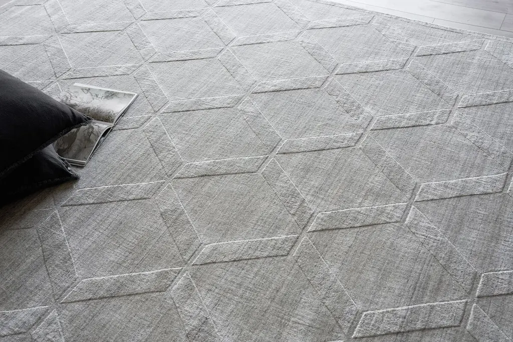 The Julia rug is designed to bring classic, simple chic style to any room. This beautifully textured piece features luscious bamboo silk and an appealing all-over geometric box pattern.