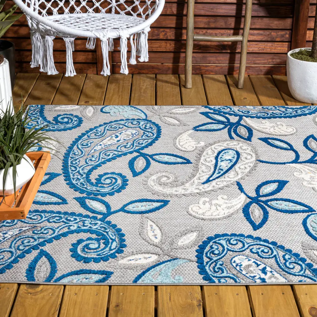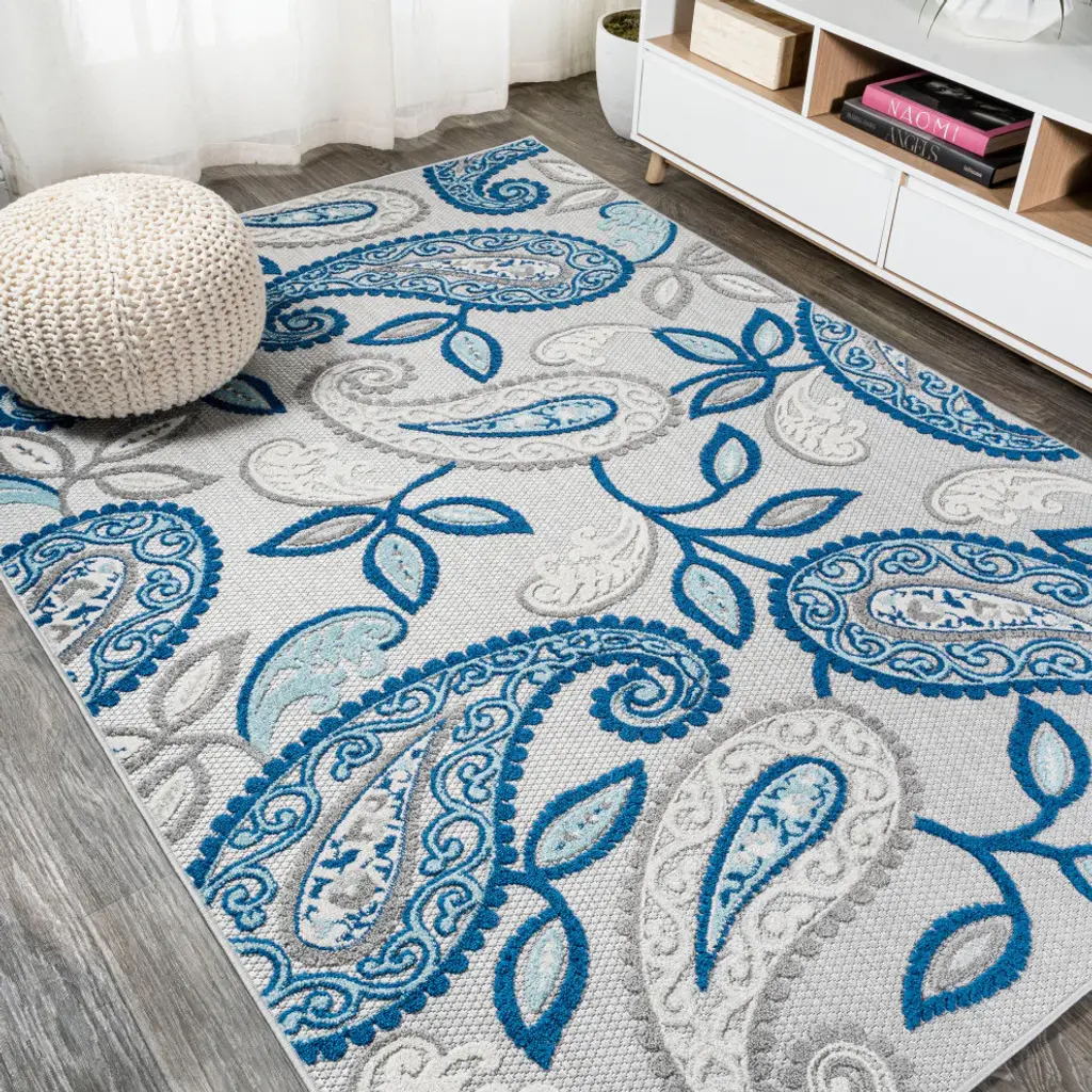 Julien Paisley High-Low Indoor/outdoor Area Rug, Blue/light Gray, 5'x8'