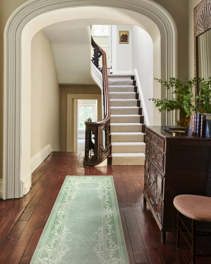 Romanticize the everyday with our Regency-era Juliet Sage Green Rug. This two-tone, distressed, floral-bordered design gracefully frames a subtle trellis field pattern. The soft sage green background is delicately adorned with cream flower motifs. Water-resistant, stain-resistant, and machine-washable. Rug colors may vary slightly according to your device and the lighting in your space.