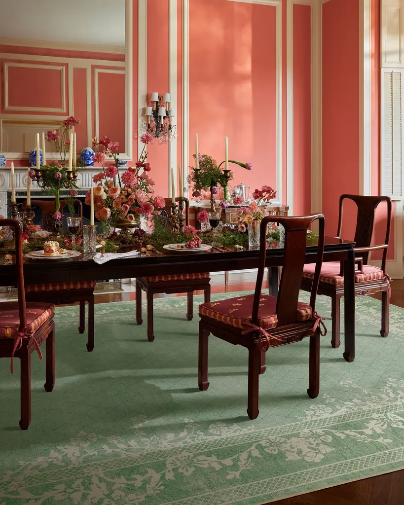 Romanticize the everyday with our Regency-era Juliet Sage Green Rug. This two-tone, distressed, floral-bordered design gracefully frames a subtle trellis field pattern. The soft sage green background is delicately adorned with cream flower motifs. Water-resistant, stain-resistant, and machine-washable. Rug colors may vary slightly according to your device and the lighting in your space.