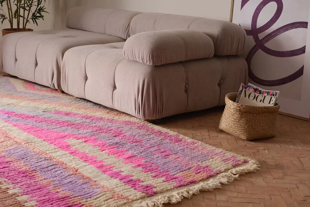 Our Moroccan pieces are each one-of-a-kind. Much of our collection was woven between 30 and 100 years ago, and curated by us. Other rugs in our collection are fresh off the loom and made with traditional techniques. Moroccan rugs don’t come with a key. As with any painting or poem, their motifs have many subjective interpretations. Originally made for personal use, these rugs took months to weave, documenting a shifting tide of events and emotions in the weaver’s life.