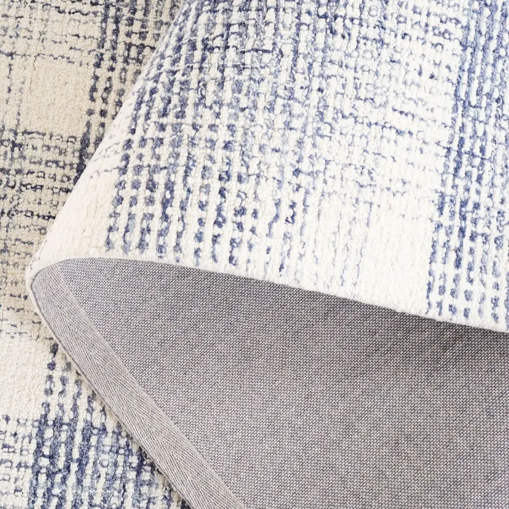 Introducing a charming addition to your home decor-a contemporary area rug that effortlessly blends style and comfort. Measuring 3 feet by 5 feet and crafted in a small rectangle shape, this rug is the perfect touch for any room. The hand-tufted weave combines wool and cotton, offering a cozy surface underfoot. The elegant ivory and blue palette creates a soothing ambiance, while the plaid pattern adds a touch of timeless charm. Originating from India, this rug embodies craftsmanship and attention to detail. With a height of 1/2 inch, it offers a subtle yet noticeable presence. Ideal for those seeking a blend of modern design and traditional weaving techniques. Transform your space with this stylish piece today.