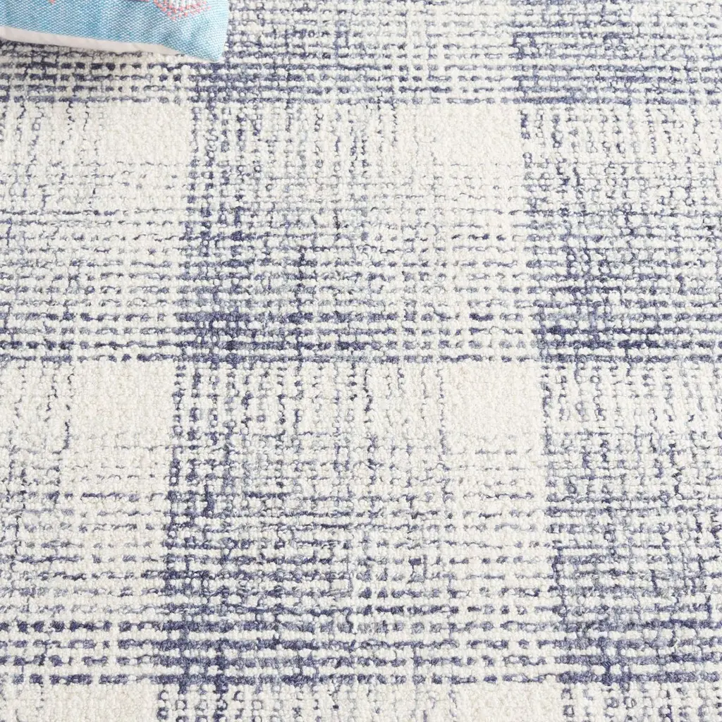Introducing a charming addition to your home decor-a contemporary area rug that effortlessly blends style and comfort. Measuring 3 feet by 5 feet and crafted in a small rectangle shape, this rug is the perfect touch for any room. The hand-tufted weave combines wool and cotton, offering a cozy surface underfoot. The elegant ivory and blue palette creates a soothing ambiance, while the plaid pattern adds a touch of timeless charm. Originating from India, this rug embodies craftsmanship and attention to detail. With a height of 1/2 inch, it offers a subtle yet noticeable presence. Ideal for those seeking a blend of modern design and traditional weaving techniques. Transform your space with this stylish piece today.
