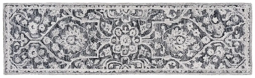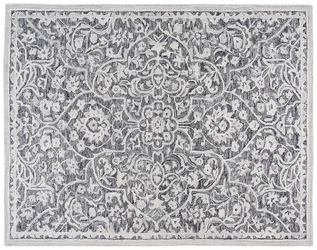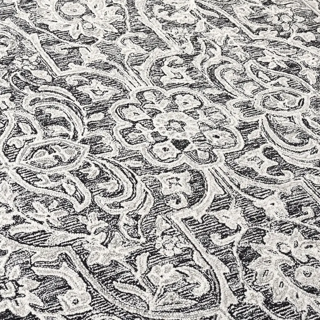 Elevate your living space with the stunning elegance of our Hand Tufted Wool and Cotton Area Rug, sized perfectly at 4 feet by 6 feet to fit a variety of rooms. This small rectangle rug features a luxurious height of 3/8 inches, providing a sumptuous feel underfoot. Crafted in India, a country renowned for its artisanal rug-making traditions, this exquisite piece boasts a composition of 85% wool and 15% cotton, ensuring durability and a soft texture that is a pleasure to touch. The hand tufted construction techniques used emphasize attention to detail and quality craftsmanship. The area rug showcases a sophisticated pattern composed of intricate florals and arabesques in a timeless black and ivory color palette. This classic design seamlessly integrates with both contemporary and traditional decors, adding a touch of opulence to any area. Breathe new life into your home with this exceptional area rug, where luxury meets timeless style. Whether it's placed in your living room, bedroom, or entryway, this rug is sure to be a captivating centerpiece that draws compliments from guests and family alike.