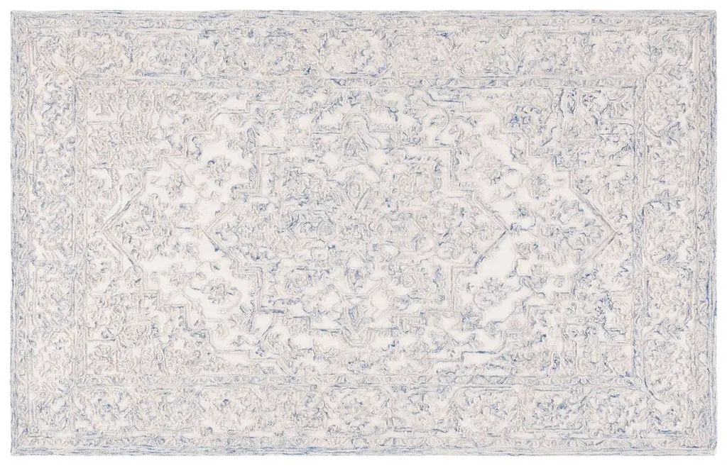 Elevate your living space with the stunning elegance of our Hand Tufted Wool and Cotton Area Rug, sized perfectly at 4 feet by 6 feet to fit a variety of rooms. This small rectangle rug features a luxurious height of 3/8 inches, providing a sumptuous feel underfoot. Crafted in India, a country renowned for its artisanal rug-making traditions, this exquisite piece boasts a composition of 85% wool and 15% cotton, ensuring durability and a soft texture that is a pleasure to touch. The hand tufted construction techniques used emphasize attention to detail and quality craftsmanship. The area rug showcases a sophisticated pattern composed of intricate florals and arabesques in a timeless black and ivory color palette. This classic design seamlessly integrates with both contemporary and traditional decors, adding a touch of opulence to any area. Breathe new life into your home with this exceptional area rug, where luxury meets timeless style. Whether it's placed in your living room, bedroom, or entryway, this rug is sure to be a captivating centerpiece that draws compliments from guests and family alike.