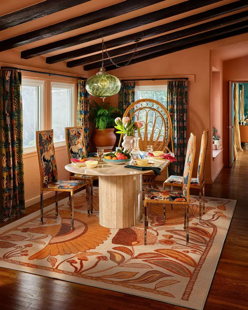 Add a touch of yellow and orange flare with our Justina Blakeney Alice Mellow Yellow Rug. Inspired by ancient Egyptian papyrus flowers and bold botanicals, this vintage-like 70s design features dreamy mushroom motifs and eclectic florals set against a light cream background. Expand your decor—and consciousness—with a delightful combination of soft pinks, yellows, oranges, and natural browns. Water-resistant, stain-resistant, and machine-washable. Rug colors may vary slightly according to your device and the lighting in your space.