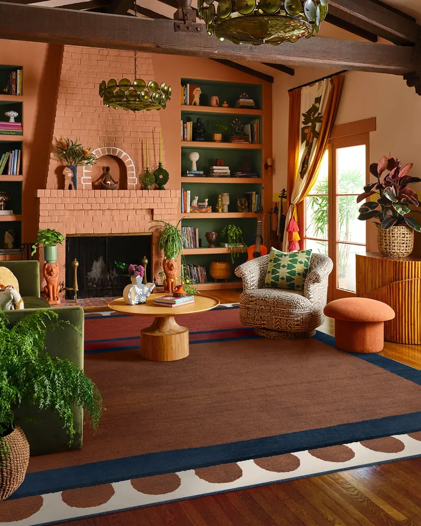 Your home is your canvas with our Justina Blakeney Nina Indigo & Rust Rug. Inspired by the work of abstract expressionist Mark Rothko, this geometric design features scalloped-edge curves and fluid colors, echoing Justina's sense of style. The cream and camel border, along with the navy blue outline, gracefully frames the composition, while rustic orange, red, and camel brown fill in this color-blocked and artistic style. Water-resistant, stain-resistant, and machine-washable. Rug colors may vary slightly according to your device and the lighting in your space.
