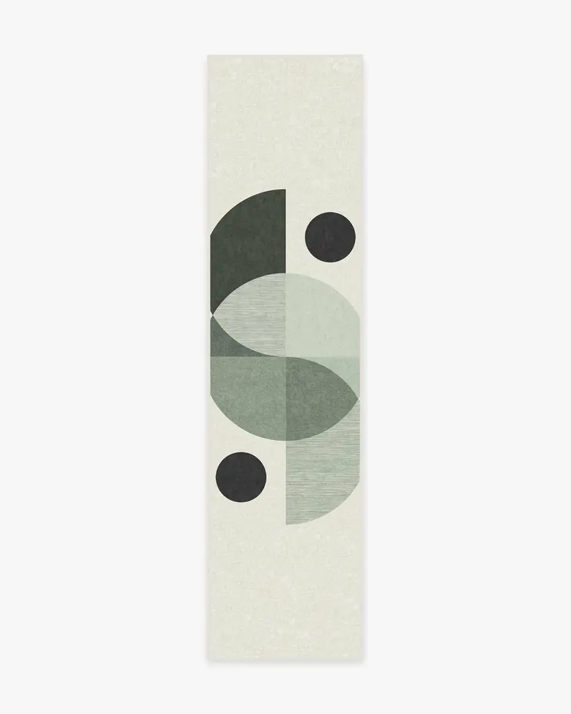 Decorate wild with our Justina Blakeney Sonia Sand & Ocean Rug. Inspired by Justina's original painting, "Tomorrow," this Orphism-like design features Justina's hand-painted geometric shapes playfully intertwined. The color palette seamlessly blends warm neutrals and creams with and cool blues and soft sage greens. Water-resistant, stain-resistant, and machine-washable. Rug colors may vary slightly according to your device and the lighting in your space.
