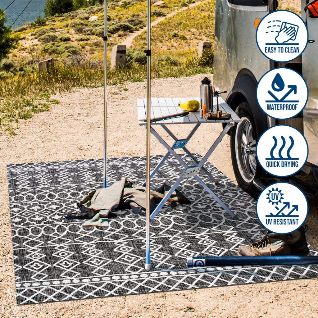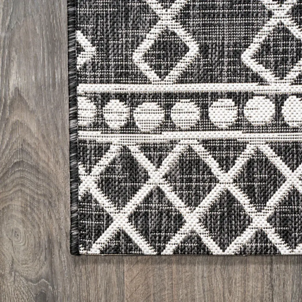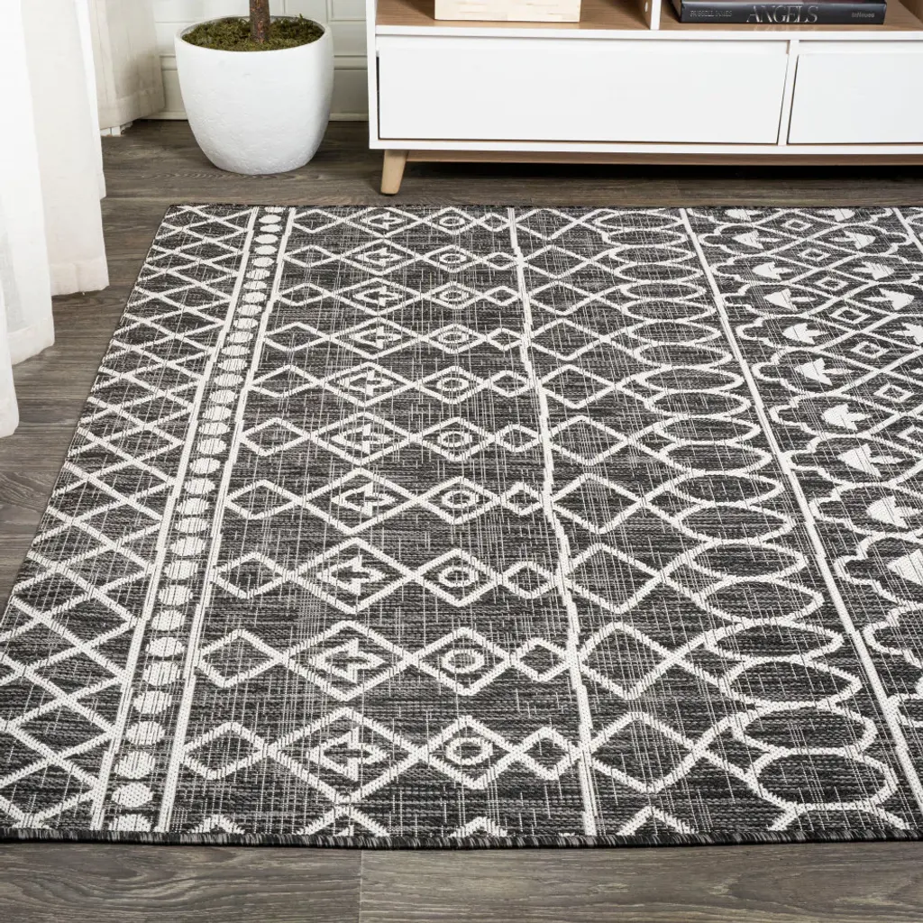 Kafel Tribal Bohemian Indoor/outdoor Area Rug, Black/ivory, 8'x10'