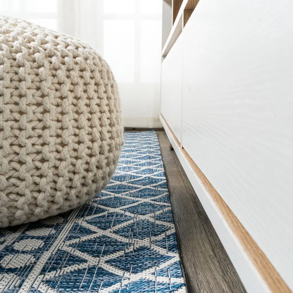 Moroccan influences abound in the geometric design of our tribal-inspired rug. The ornate diamond pattern has the handwoven look that adds a global chic touch. Add Bohemian flair to your living room, dining room, bedroom, kitchen or entry with this easy-care rug. Features:• Power loomed with a 0. 19" pile that''s soft and durable• The crisp blue and ivory color scheme adds coastal cottage flair to a modern tribal design• Made from easy-care polypropylene - just sweep, vacuum or hose down with mild soap and water• 100% Polypropylene• No backing, use of rug pad is recommended (sold separately)• Power Loomed in Turkey• Actual Dimension: 2 ft. 2 in. X 10 ft. • Color: Blue/Ivory• Thickness measures: 0. 19 in. • Available in multiple sizes and/or colorsRug Care:• Vacuum regularly and spot clean as needed; avoid direct and continuous exposure to sunlight; use brushless vacuum; remove spills immediately; if liquid, blot with clean, undyed cloth by pressing firmly around the spill to absorb as much as possible; for hard to remove stains, professional rug cleaning is recommended; store in a dry, well ventilated area and rotate for consistent wear• Packing and shipping may cause temporary creases in rugs, which will flatten out after a week on the floor; to expedite the process, try back-rolling your rug before laying it down, and then allow ample time for the remaining creases to relax• Please Note: Due to differences in monitors, some rug colors may vary slightly. Lengths and widths may vary from the published dimensions. Patterns may vary slightly according to shape and size selected. About us:Style your floors with JONATHAN Y. By combining fine craftsmanship and design, this New York creative studio is bringing fashion to your floors. The collection mixes sustainable organic materials, vibrant colors and trend worthy styles to create JONATHAN Y''s distinctive catalog of rugs.
