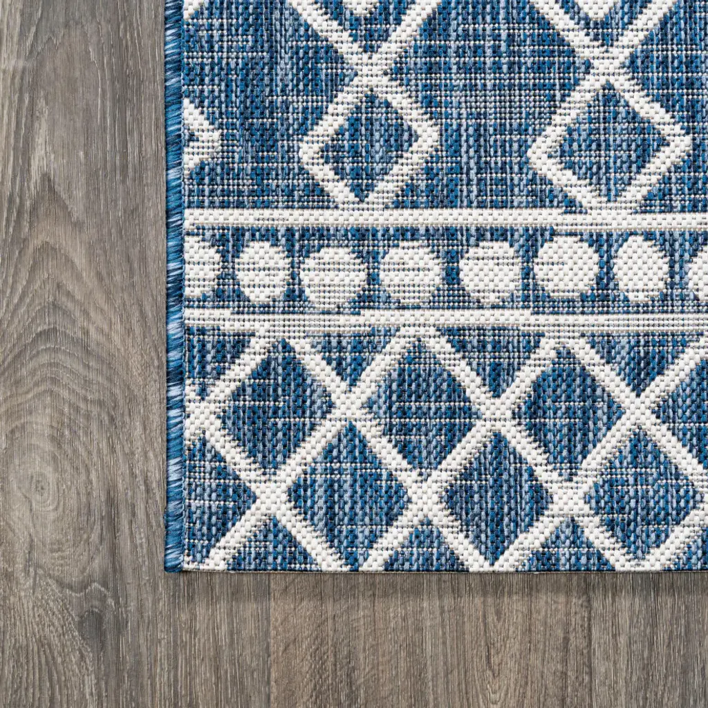 Kafel Tribal Bohemian Indoor/outdoor Area Rug, Blue/ivory, 3'x5'