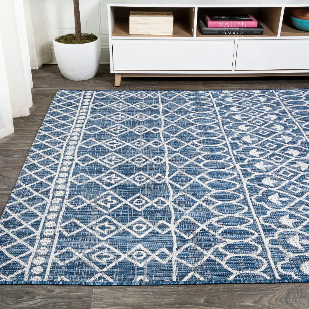 Kafel Tribal Bohemian Indoor/outdoor Area Rug, Blue/ivory, 4'x6'
