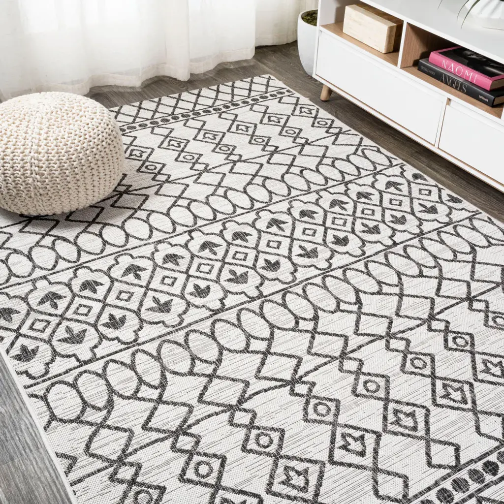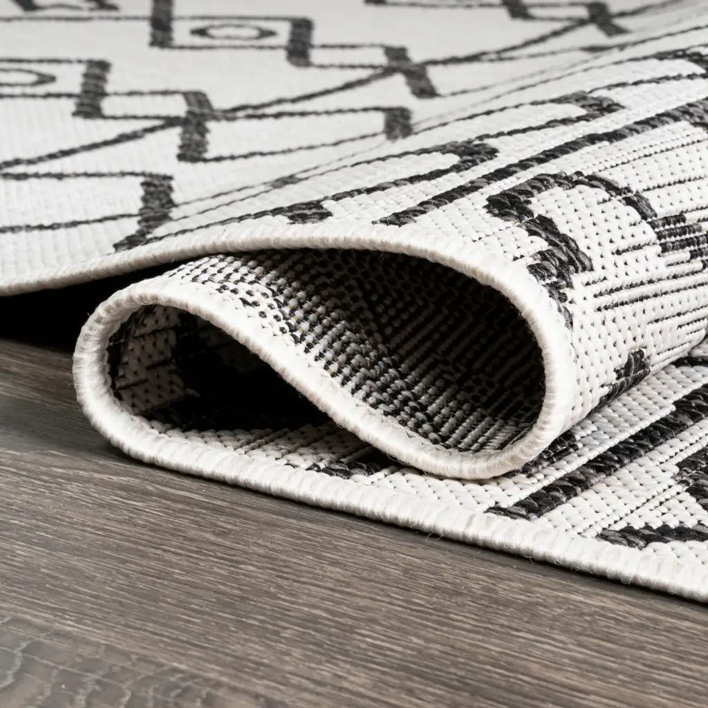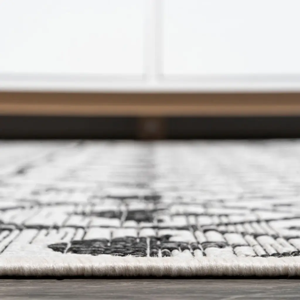 Kafel Tribal Bohemian Indoor/outdoor Area Rug, Ivory/black, 3'x5'