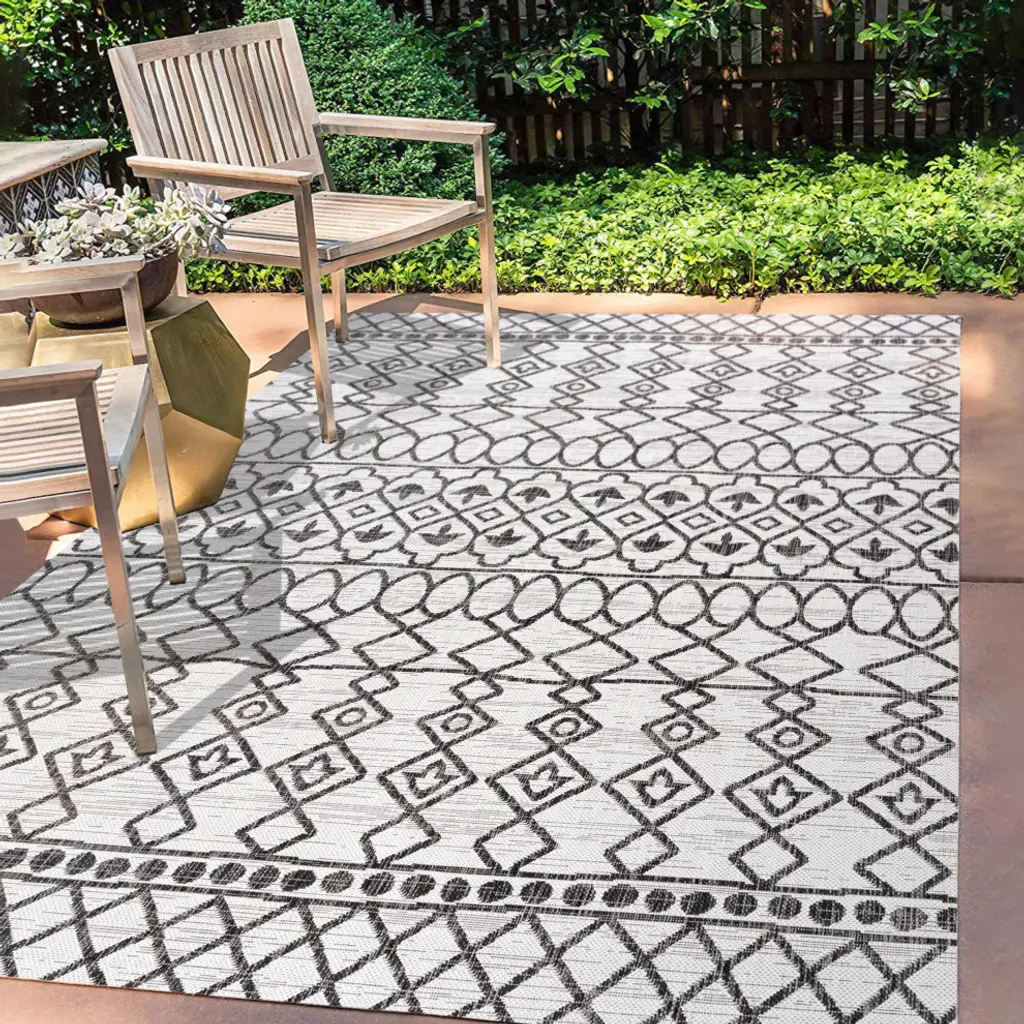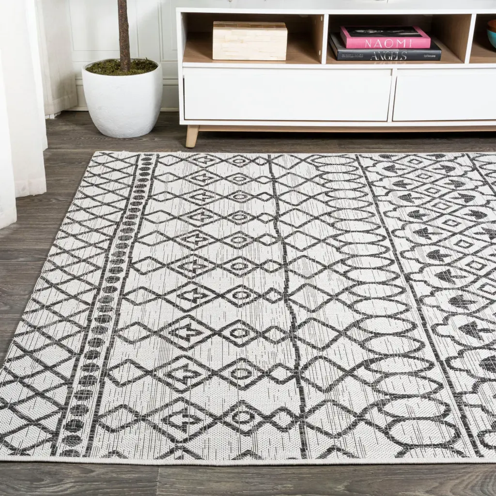 Kafel Tribal Bohemian Indoor/outdoor Area Rug, Ivory/black, 5'x8'