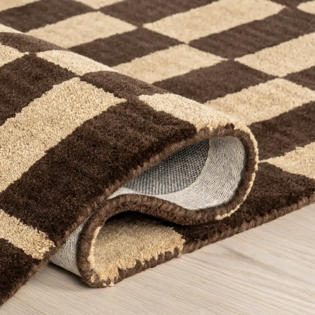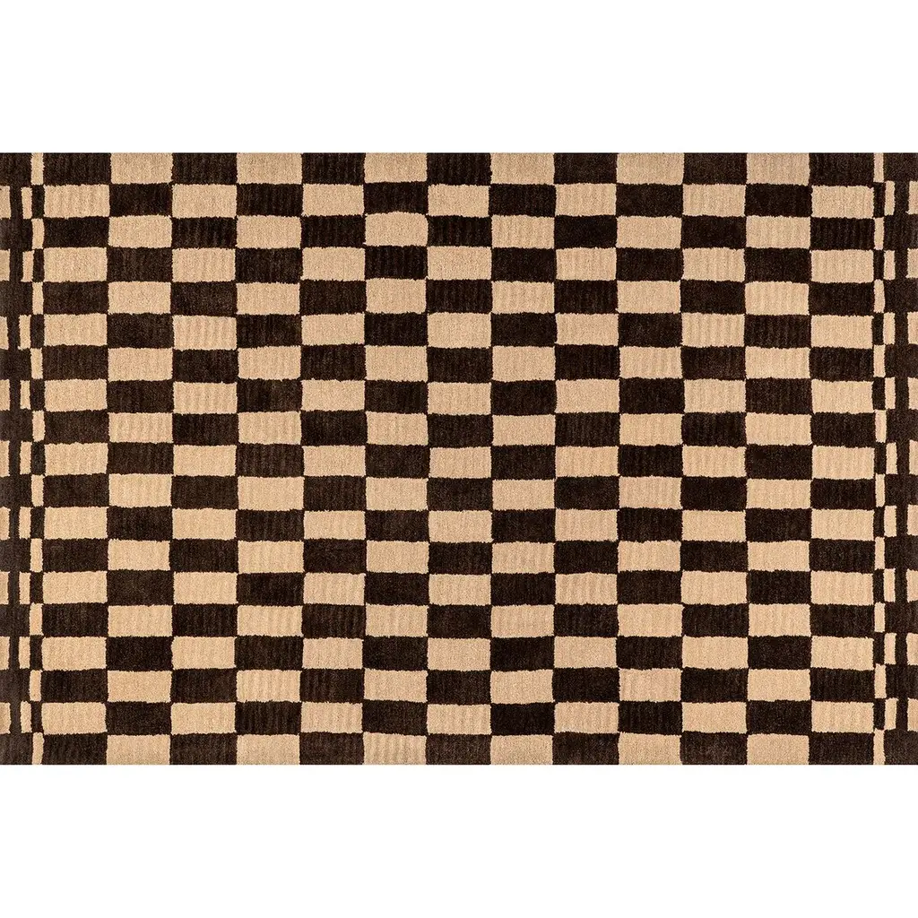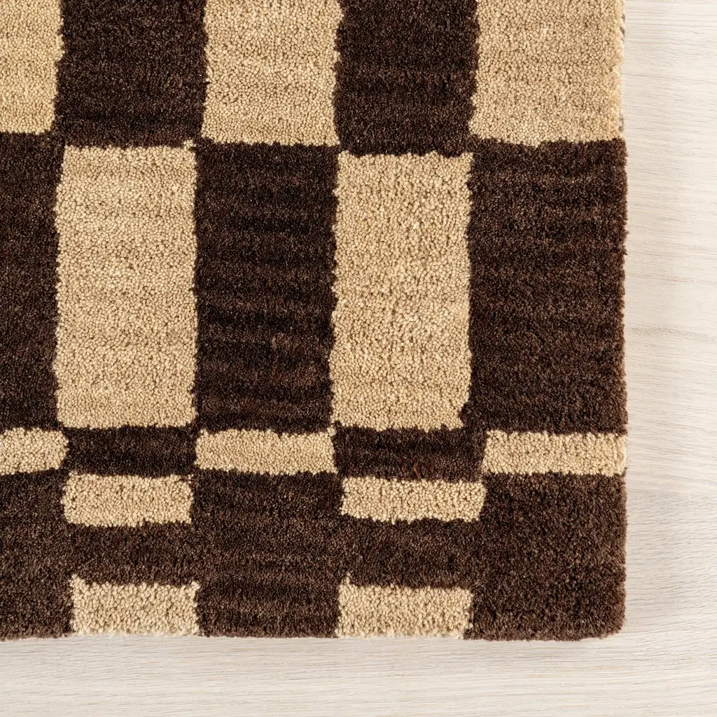 Kai Checkerboard Wool Rug | Dark Brown - 3' X 5'