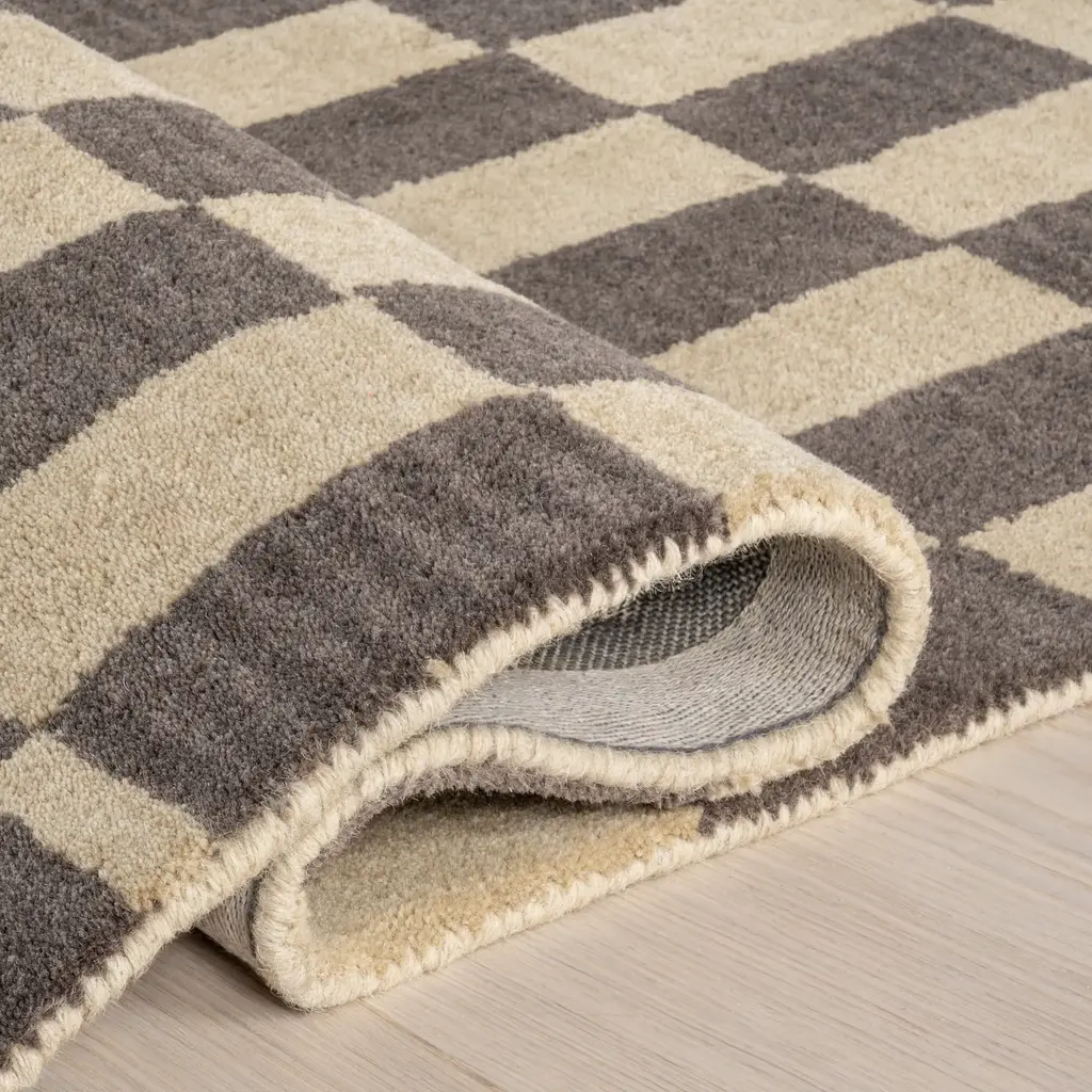 Kai Checkerboard Wool Rug | Grey - 2' 6" X 8'