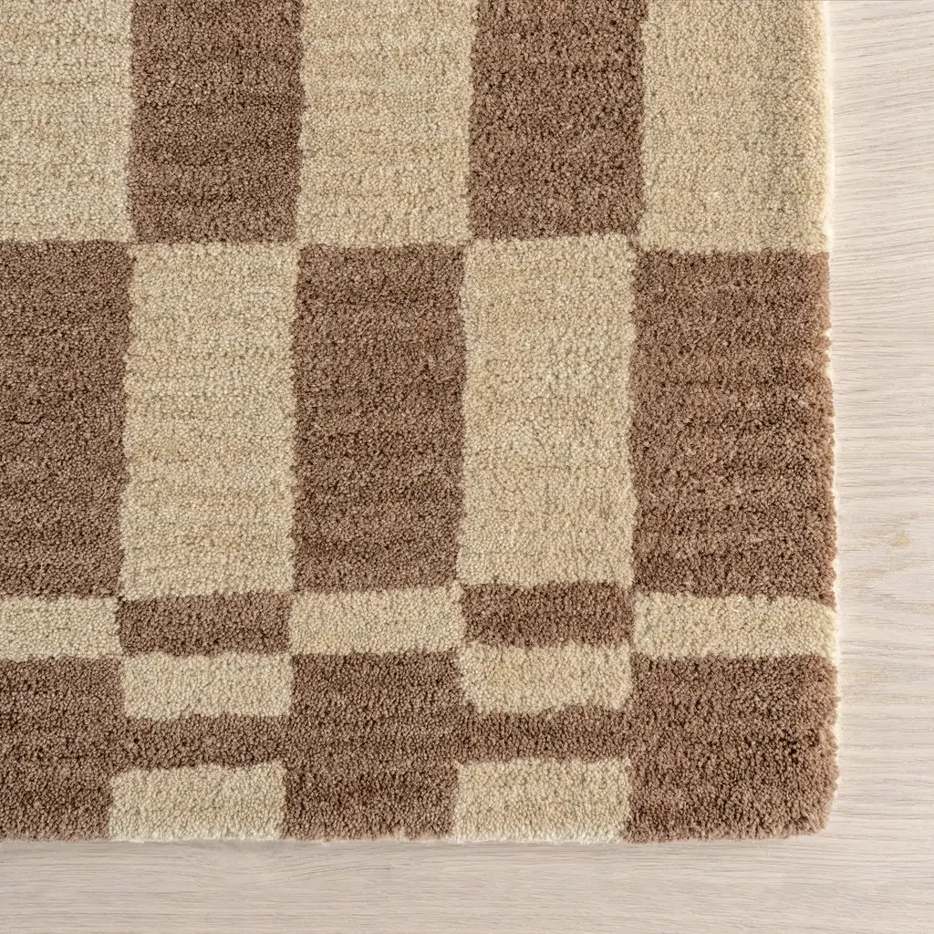 Kai Checkerboard Wool Rug | Mocha Brown - 6' X 9'