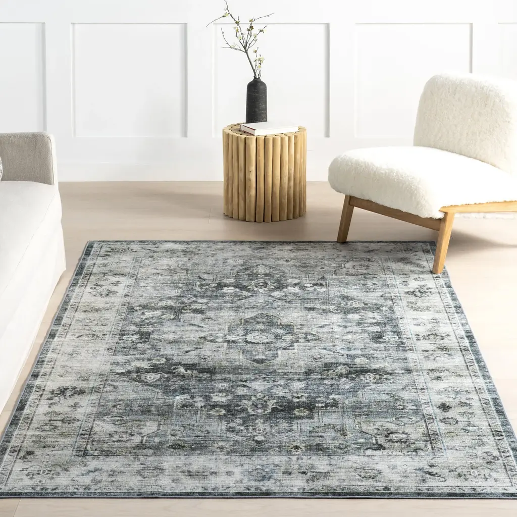Kairi Medallion Spill Proof Washable Rug | Slate Blue - 8' X 10'