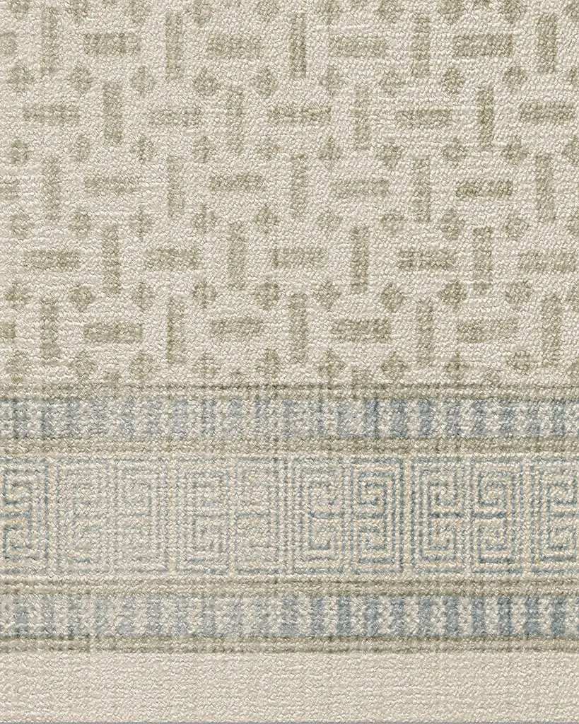 Light and layered, our Kairos Ivory & Blue Rug draws inspiration from the intricate tile patterns found in Mediterranean estates. Blending shades of beige, ivory, and soft blues, this rug showcases a unique and decorated design highlighted by its beautiful border. Water-resistant, stain-resistant, and machine-washable. Rug colors may vary slightly according to your device and the lighting in your space.