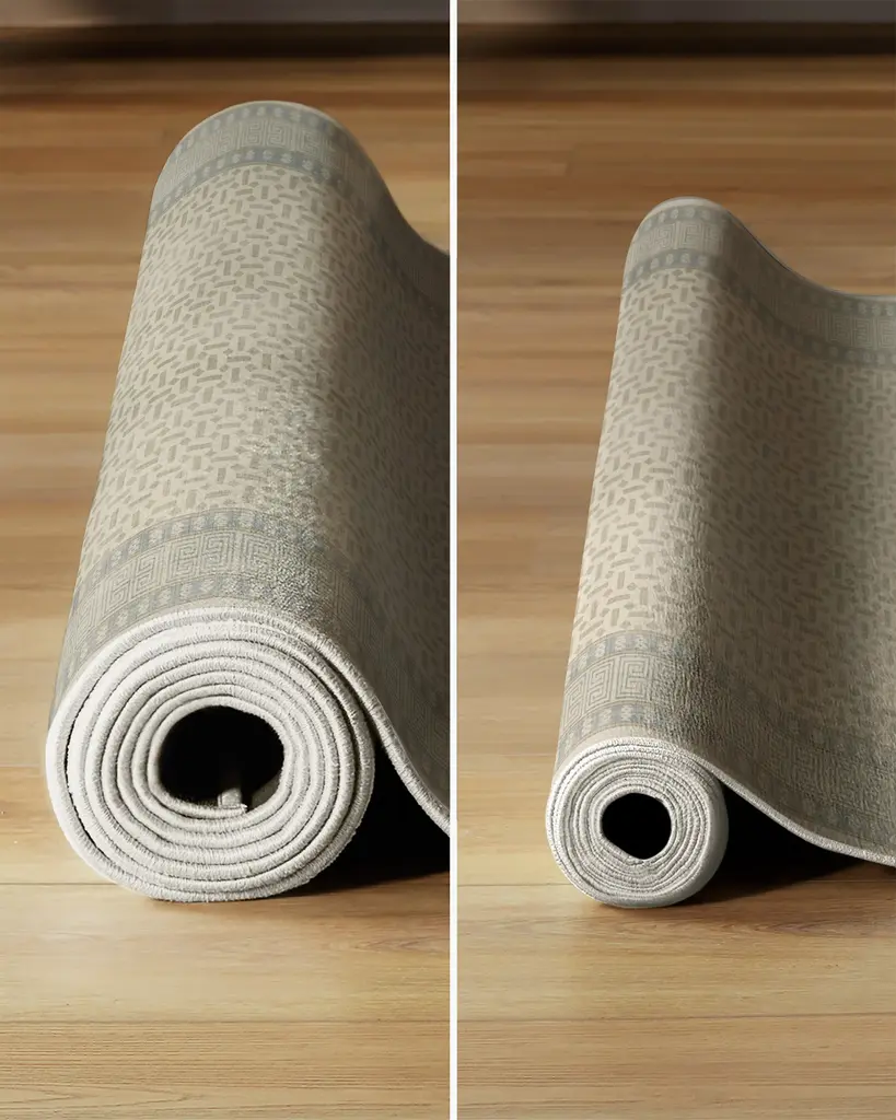 Light and layered, our Kairos Ivory & Blue Rug draws inspiration from the intricate tile patterns found in Mediterranean estates. Blending shades of beige, ivory, and soft blues, this rug showcases a unique and decorated design highlighted by its beautiful border. Water-resistant, stain-resistant, and machine-washable. Rug colors may vary slightly according to your device and the lighting in your space.