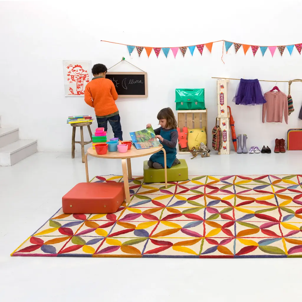 Kala means “tomorrow” and “art” in Hindi. The aim of the Care & Fair initiative is to support children’s creativity and imagination for a better future. The Kala rug is the culmination of the collaborative project between Nani Marquina and Care & Fair, a partnership with India, the brand’s main producer. The collection depicts original drawings from students at Care & Fair schools in India. This is the tangible fusion of two worlds through the eyes of children, a fusion that arises when beauty changes the world. Proceeds from the sales of this rug are donated to the organization to finance the Amita School in Bhadohi (India).