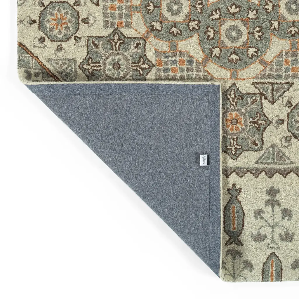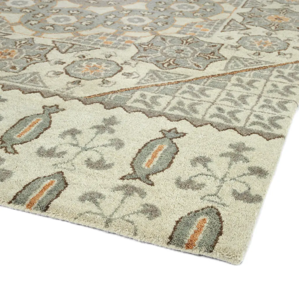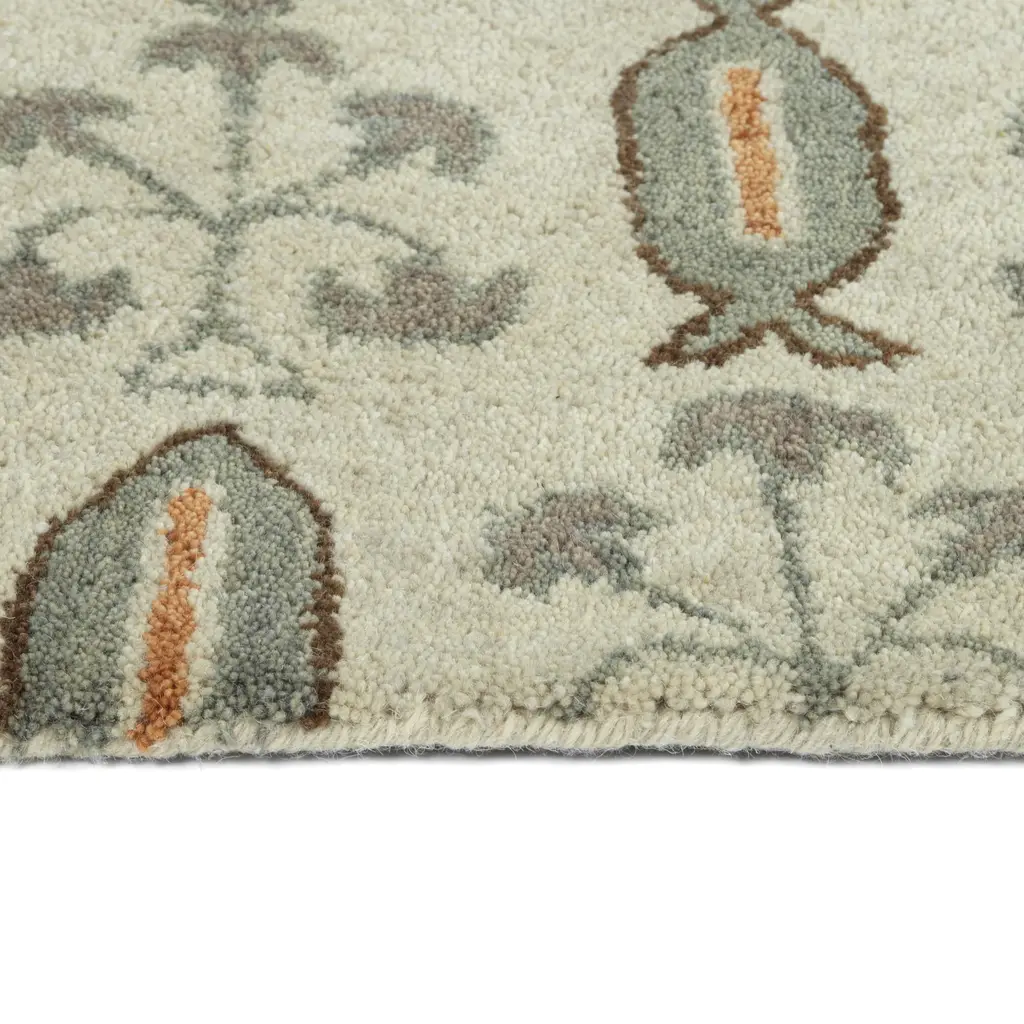 Inspired by the fashion of 16th Century nobility - simple floral shapes and patterns mixed with vibrant colors are found within the rugs that make up our Helena Collection. These gorgeous hand-tufted rugs are produced using hand-dyed 100% virgin wool which is then spun into a premium textured yarn. Each of these single pile rugs is then surged by hand and backed with Kaleen's signature cotton canvas.