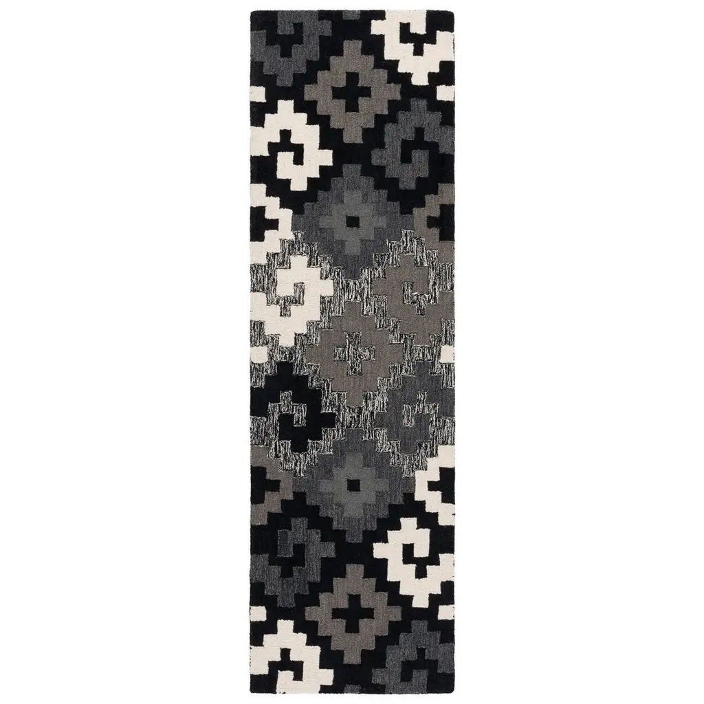 Kaleidoscope 96 X 30 Inch Khaki, Charcoal, Navy, Medium Gray Rug
