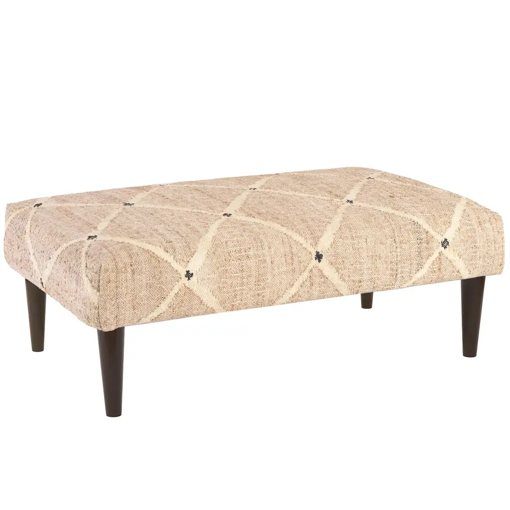 We’ve taken one of our most popular jute rug - Kali Handwoven Jute Rug - and translated it into this chic ottoman. Woven in hardworking jute and a touch of cotton for softness, the simple latticework pattern, punctuated by charcoal dots at the crisscross, makes a convenient and eye-catching option that elevates any room. The cushioned ottoman is held aloft by a choice of shapely turned-wood legs in a variety of finishes. An ideal placement for front of sofa or end of bed, doing double duty as occasional seating and staging area for a tray. This supersmart addition to entryway, living room or bedroom is a versatile investment piece, available in two sizes.